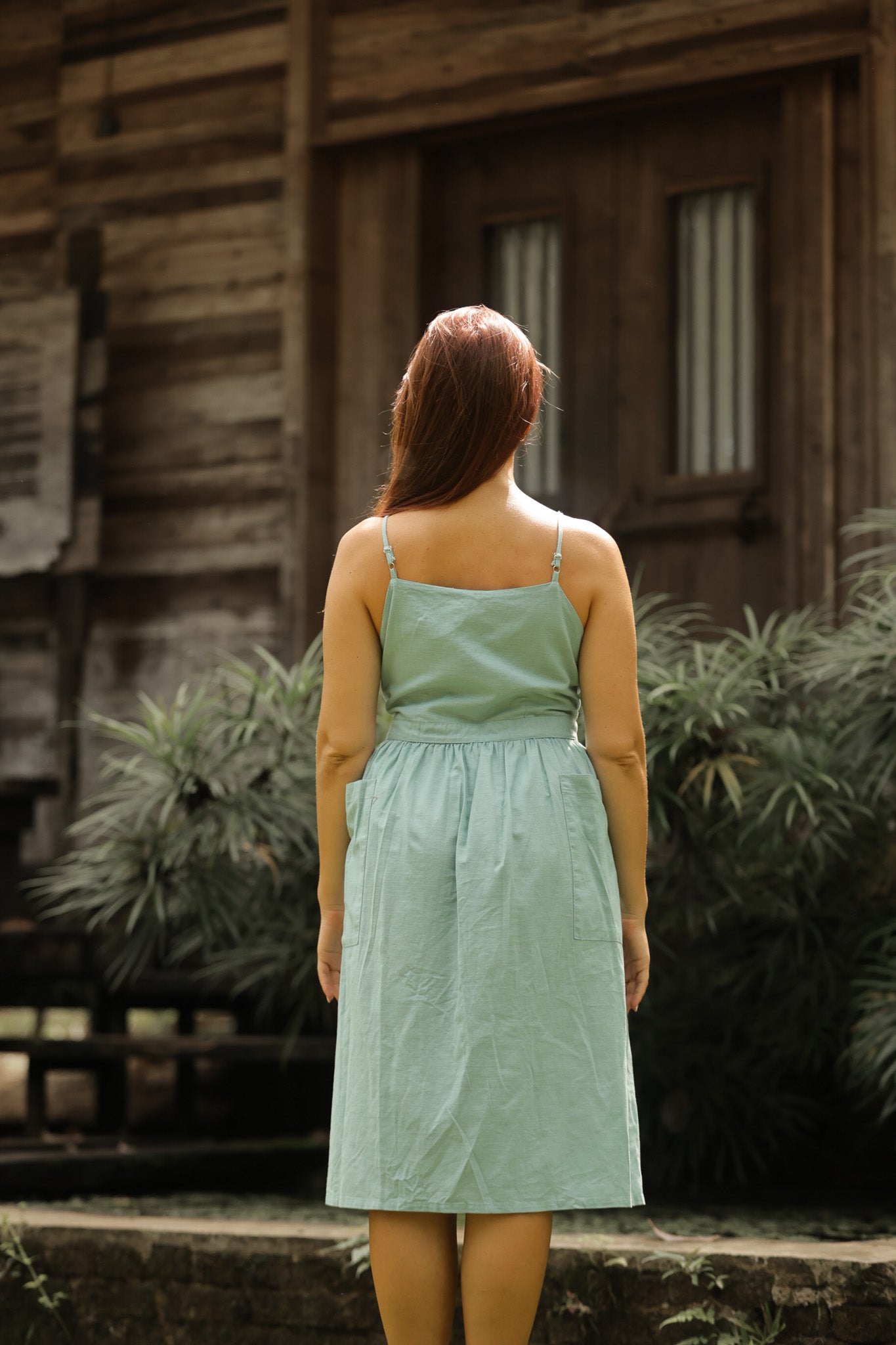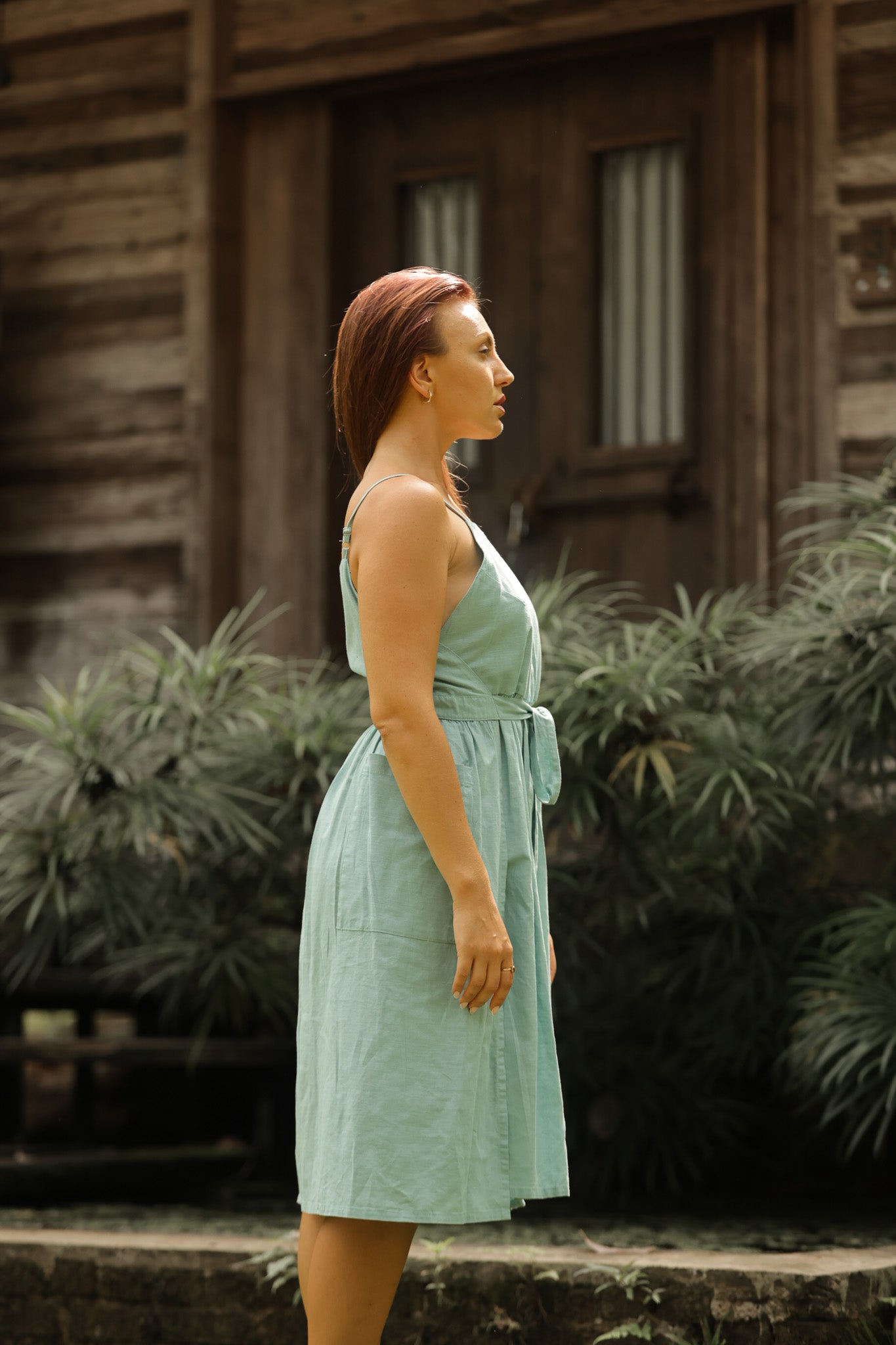This unique wrap dress is designed in breathable linen-cotton fabric, offering both comfort and effortless style. The adjustable straps provide a customizable fit, while the tie-up closure enhances the flattering silhouette. A functional side patch pocket adds a touch of practicality to its modern design. Falling to a chic midi length, this versatile piece blends casual elegance with everyday comfort, making it perfect for warm days and relaxed gatherings.