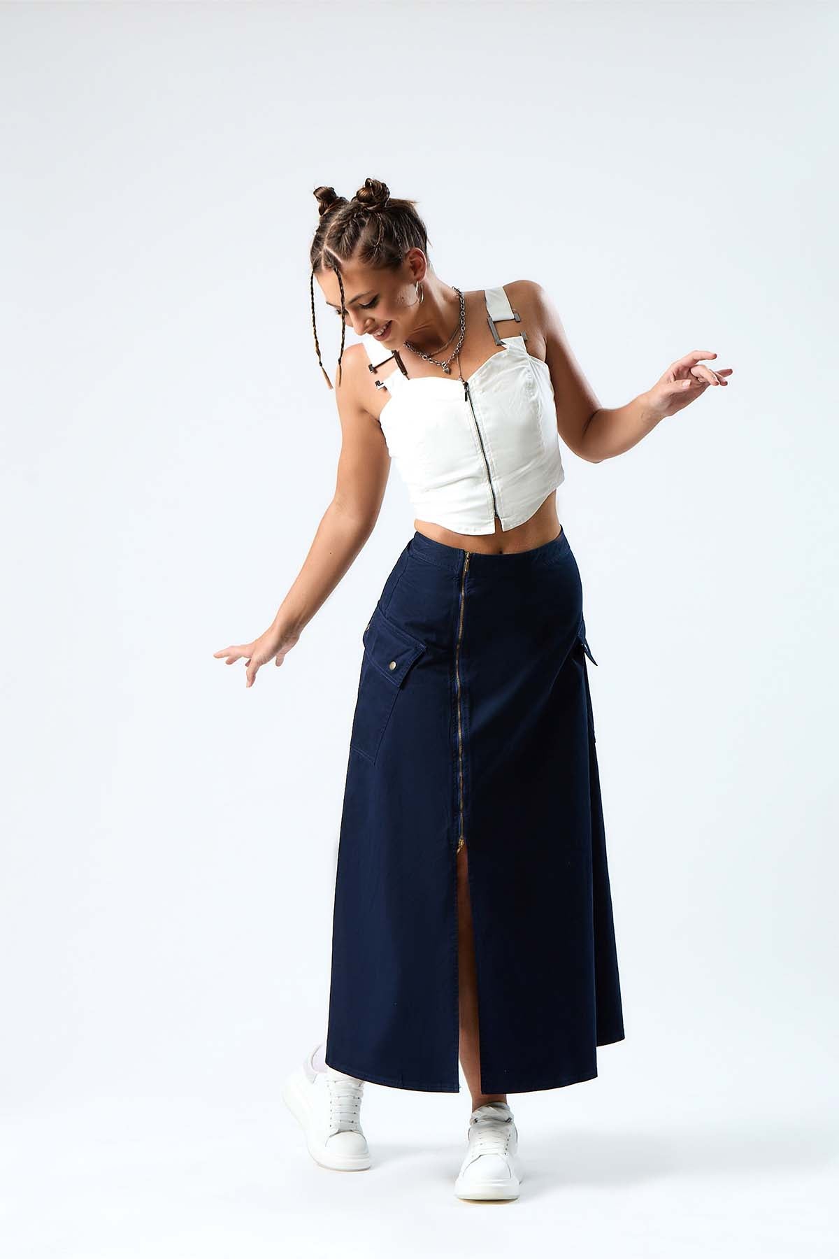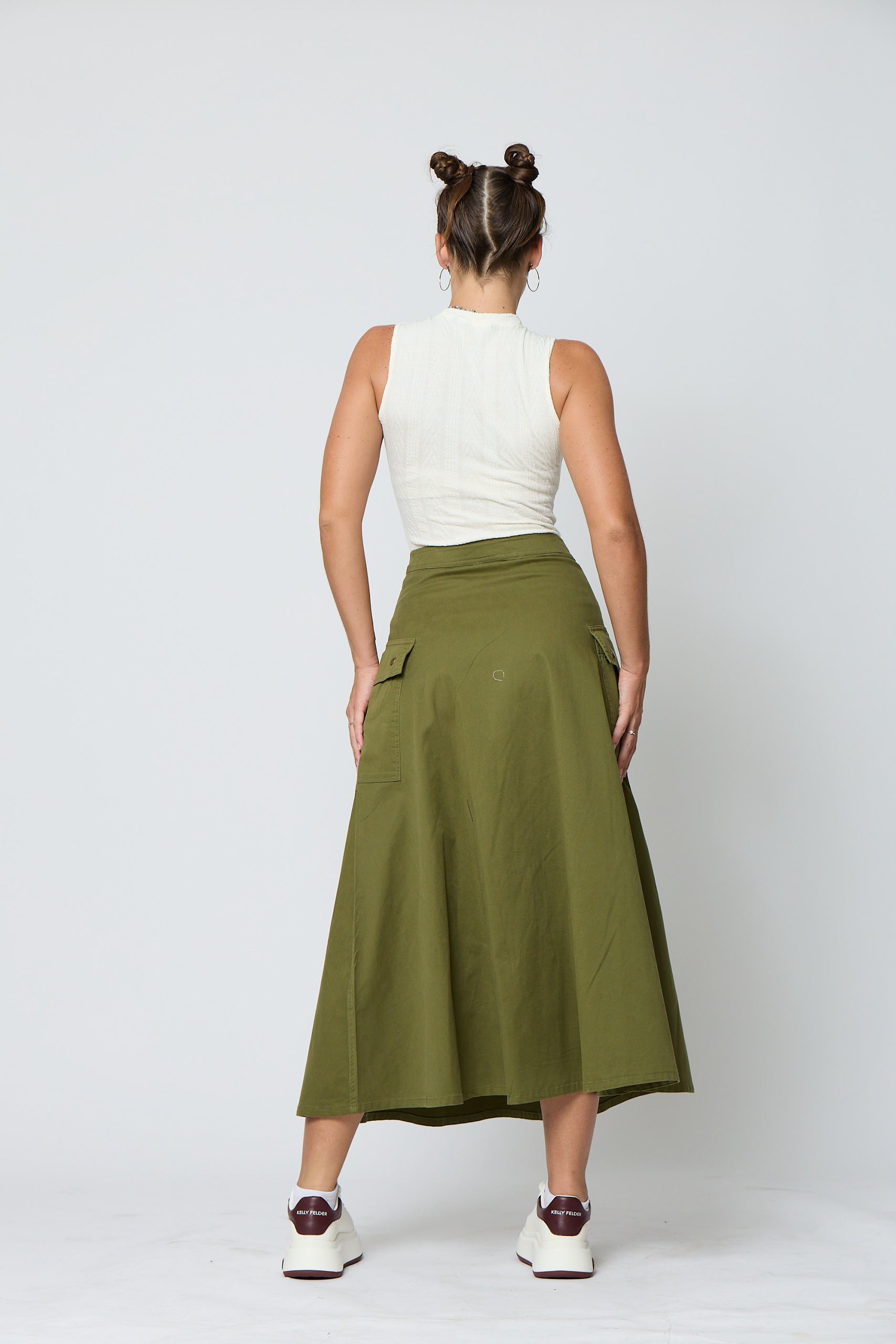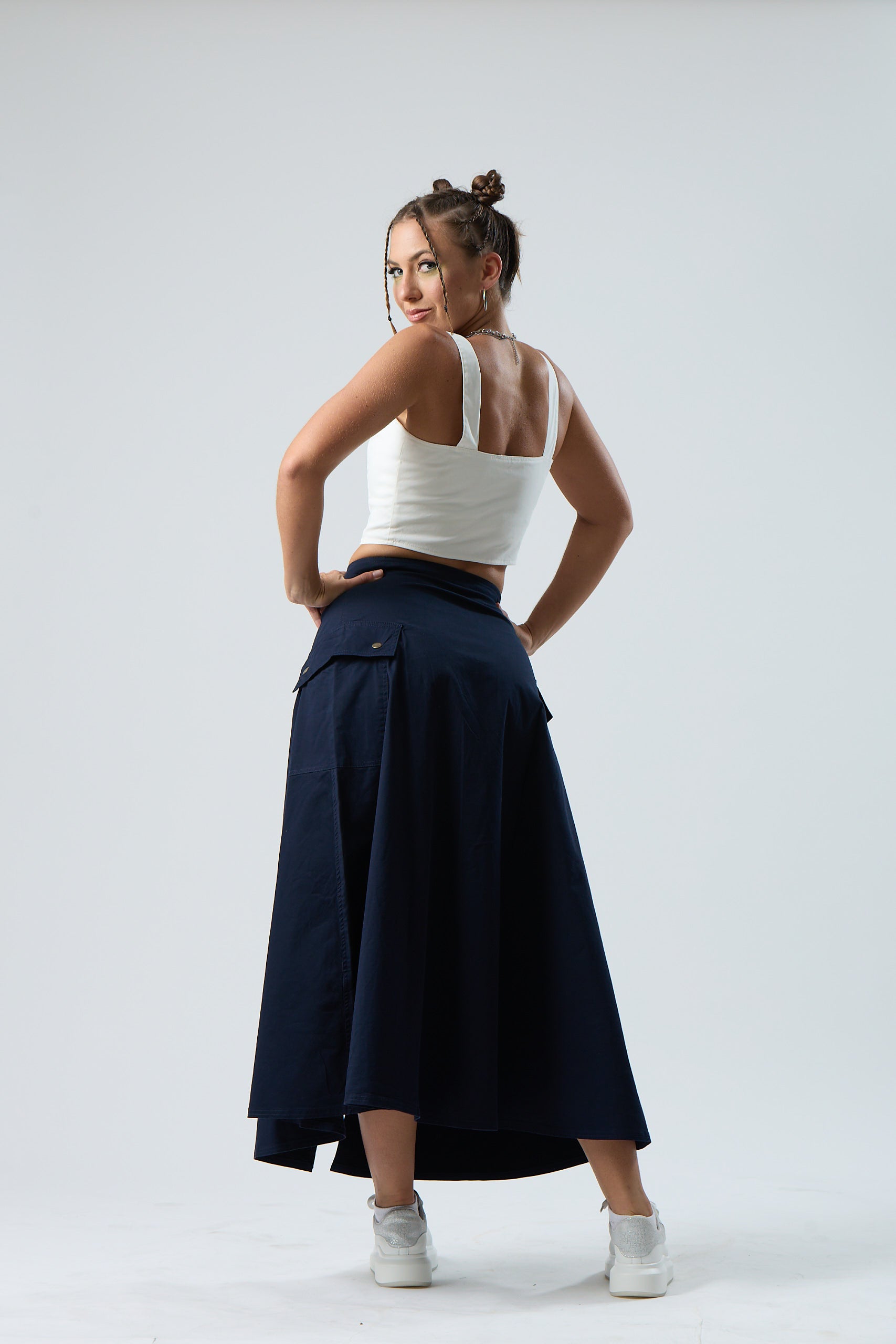 A knee-length skirt crafted in durable twill fabric, featuring a side button opening that adds a touch of utility-inspired style. The structured silhouette offers a clean, polished look while allowing ease of movement. Versatile and easy to pair, this skirt blends everyday functionality with a modern, casual edge perfect for both laid-back and elevated outfits.