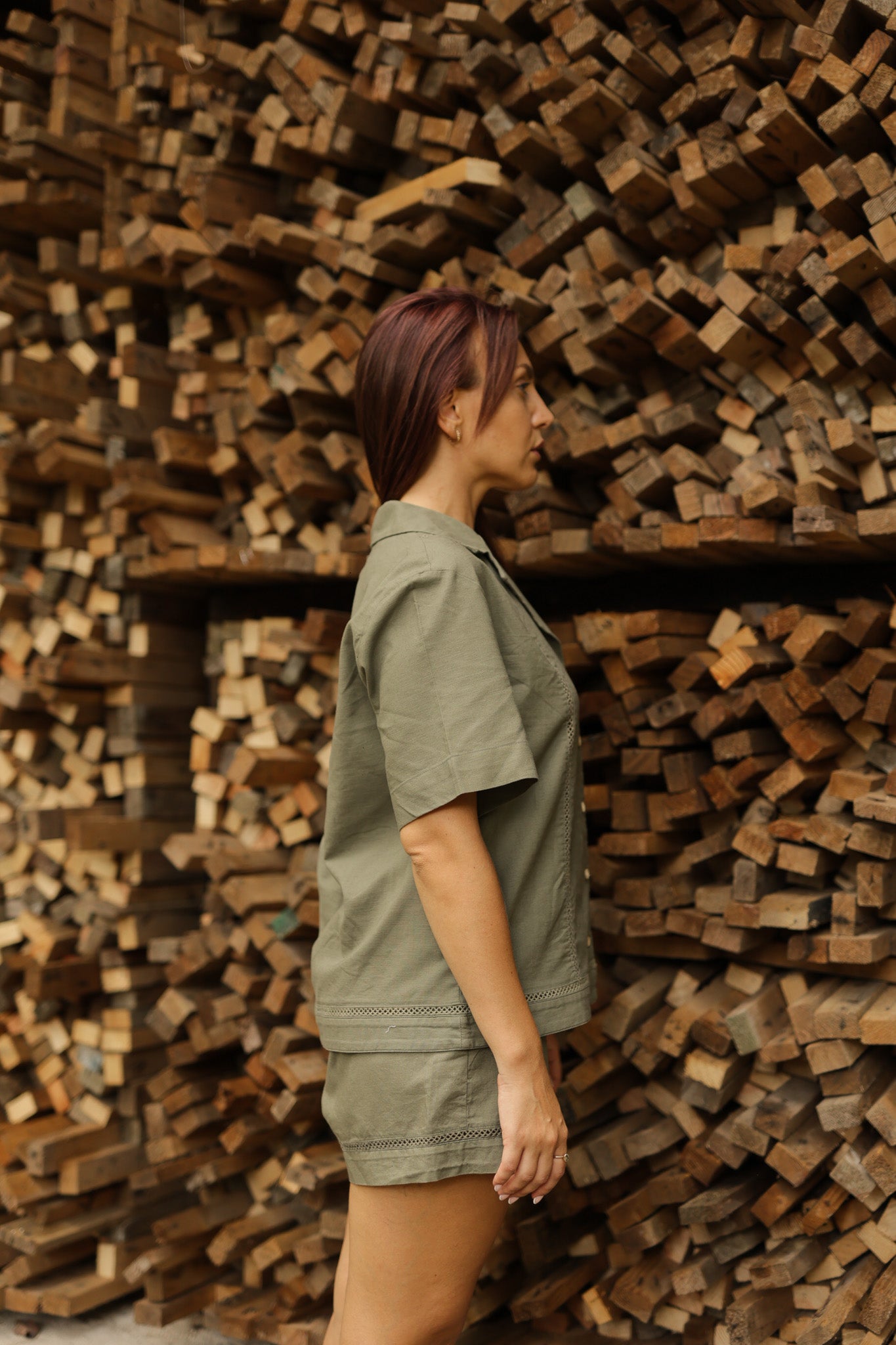 Crafted from breathable linen-cotton fabric, these shorts offer a relaxed, comfortable fit ideal for warm days. Featuring functional side pockets and subtle trim detailing, they combine practicality with understated style. Perfect for pairing with casual tops or linen shirts, these versatile shorts are an effortless addition to your everyday wardrobe, delivering comfort, ease of movement, and timeless appeal in a simple yet refined design.