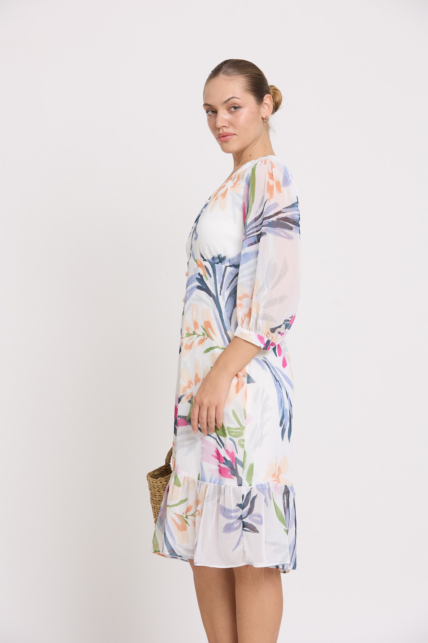 Feminine A-line shape with a subtle waist definition—ideal for a breezy, relaxed feel.Lightweight, semi-sheer fabric trimmed with a soft lining—perfect for warm-weather wear.