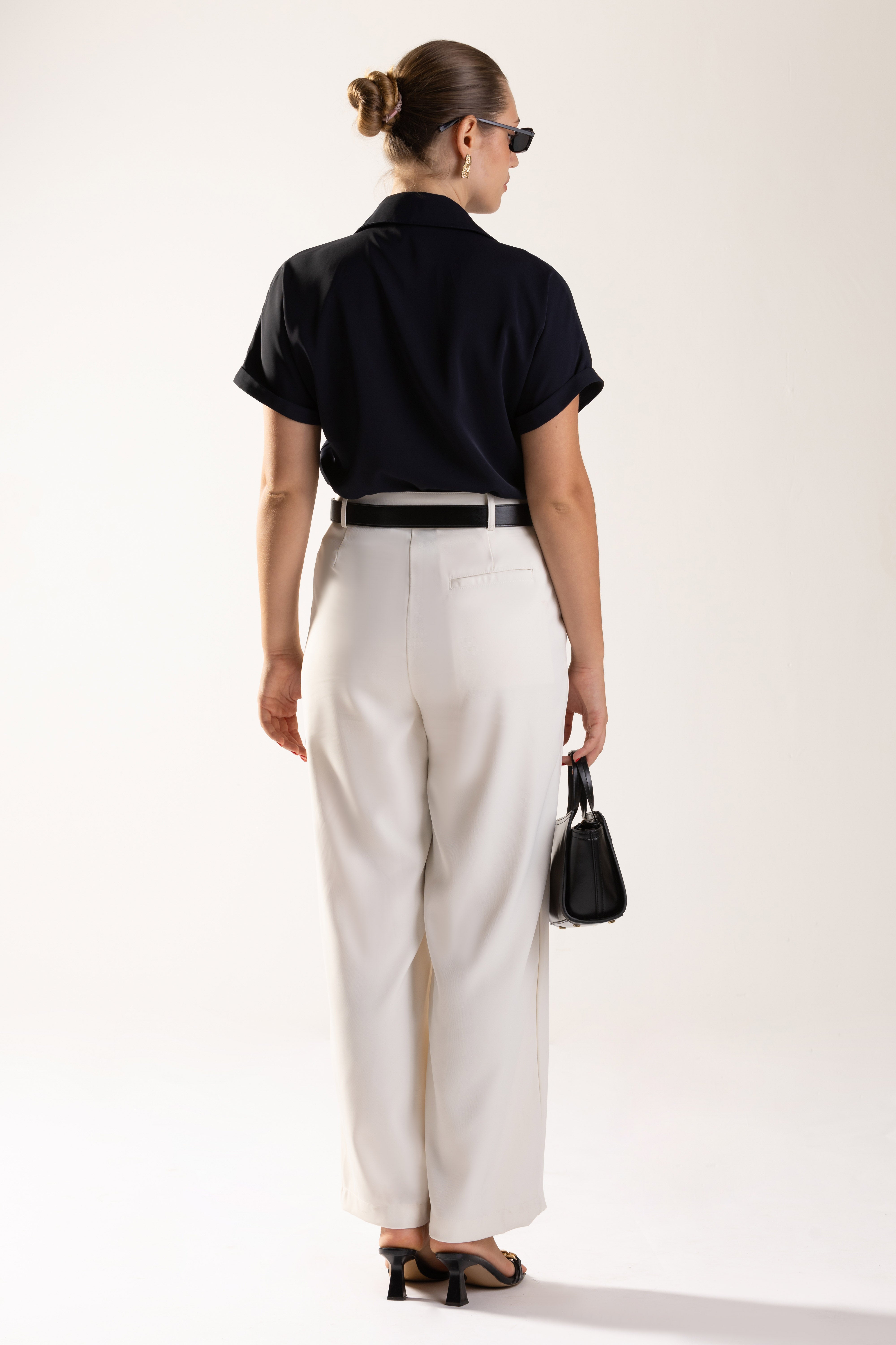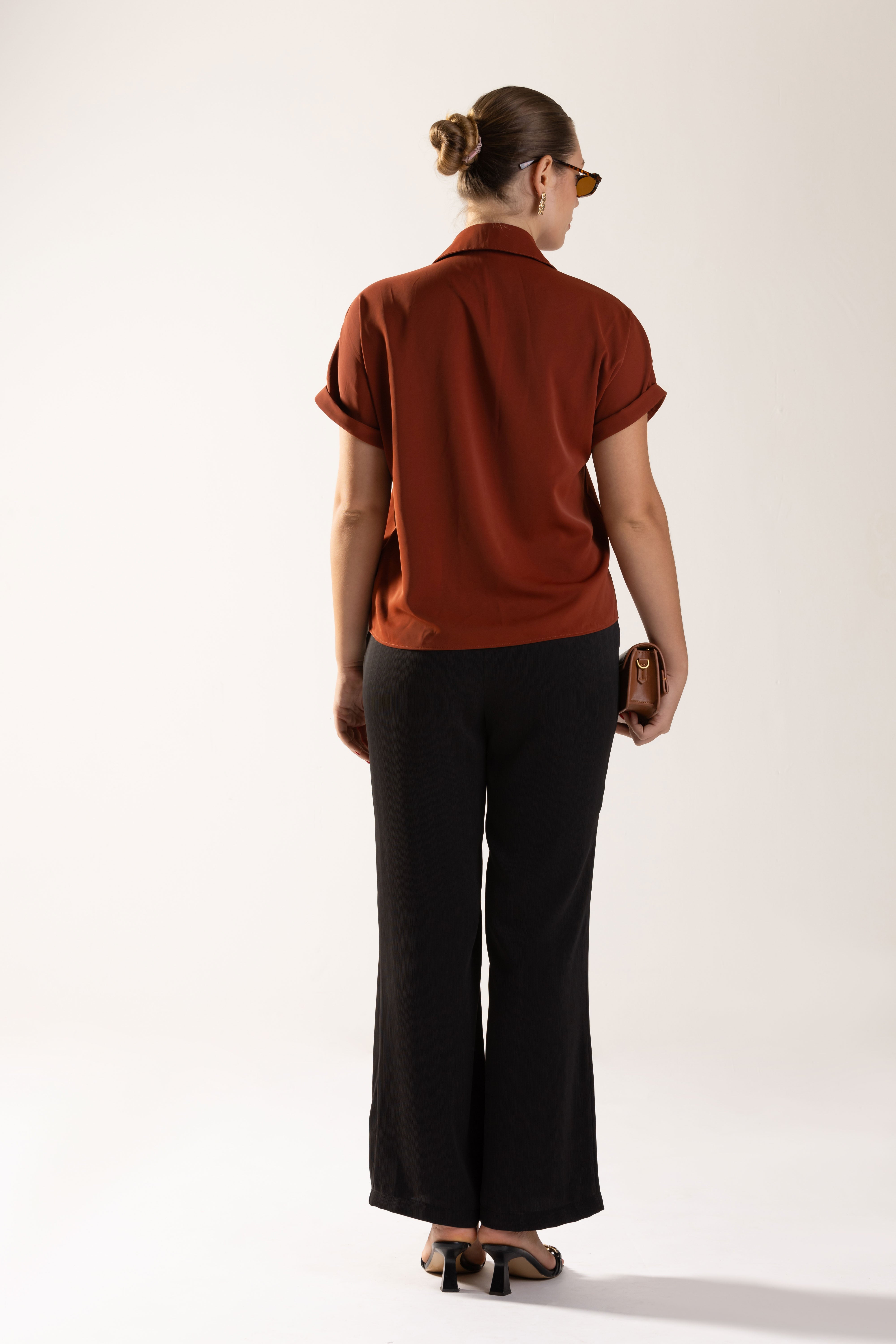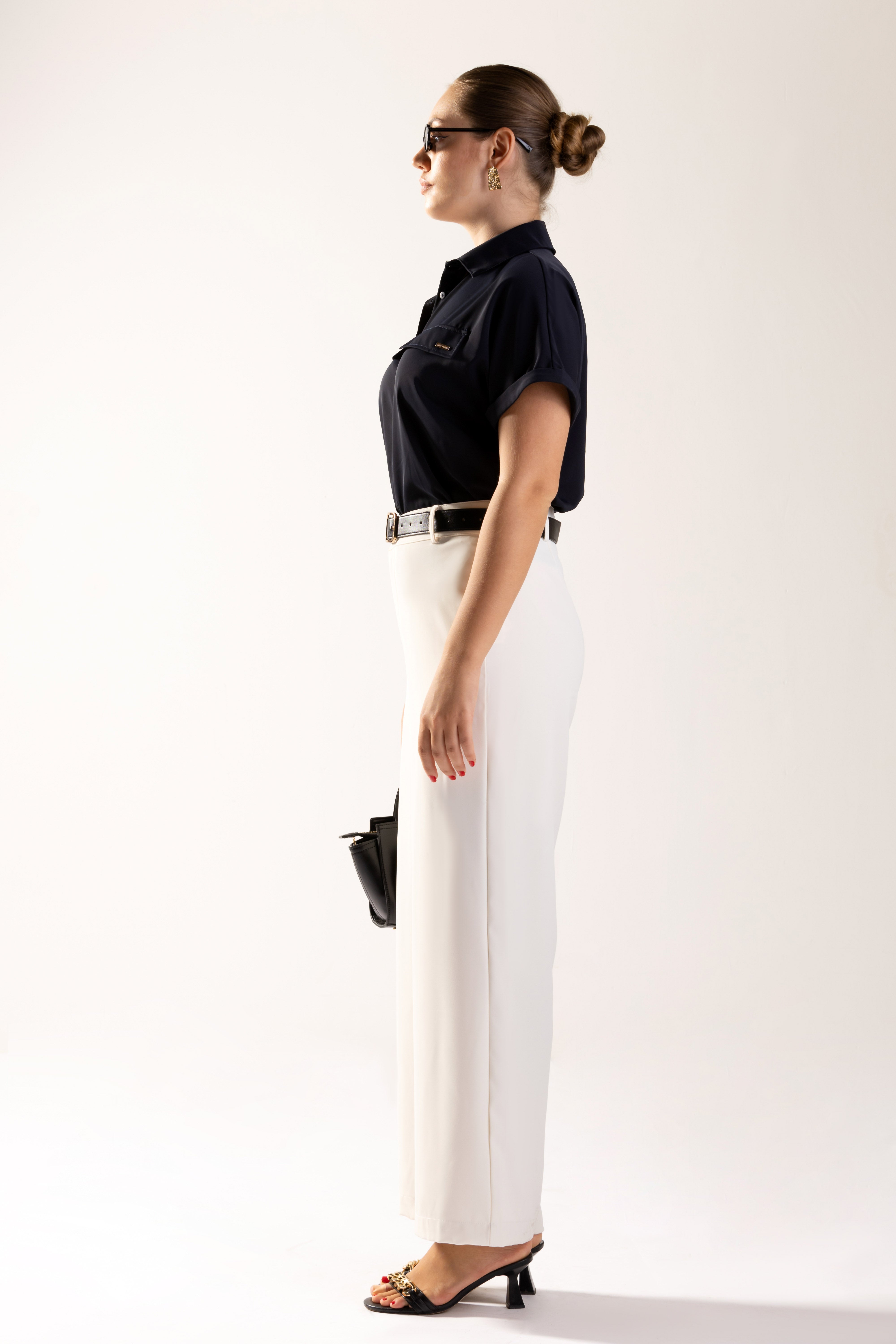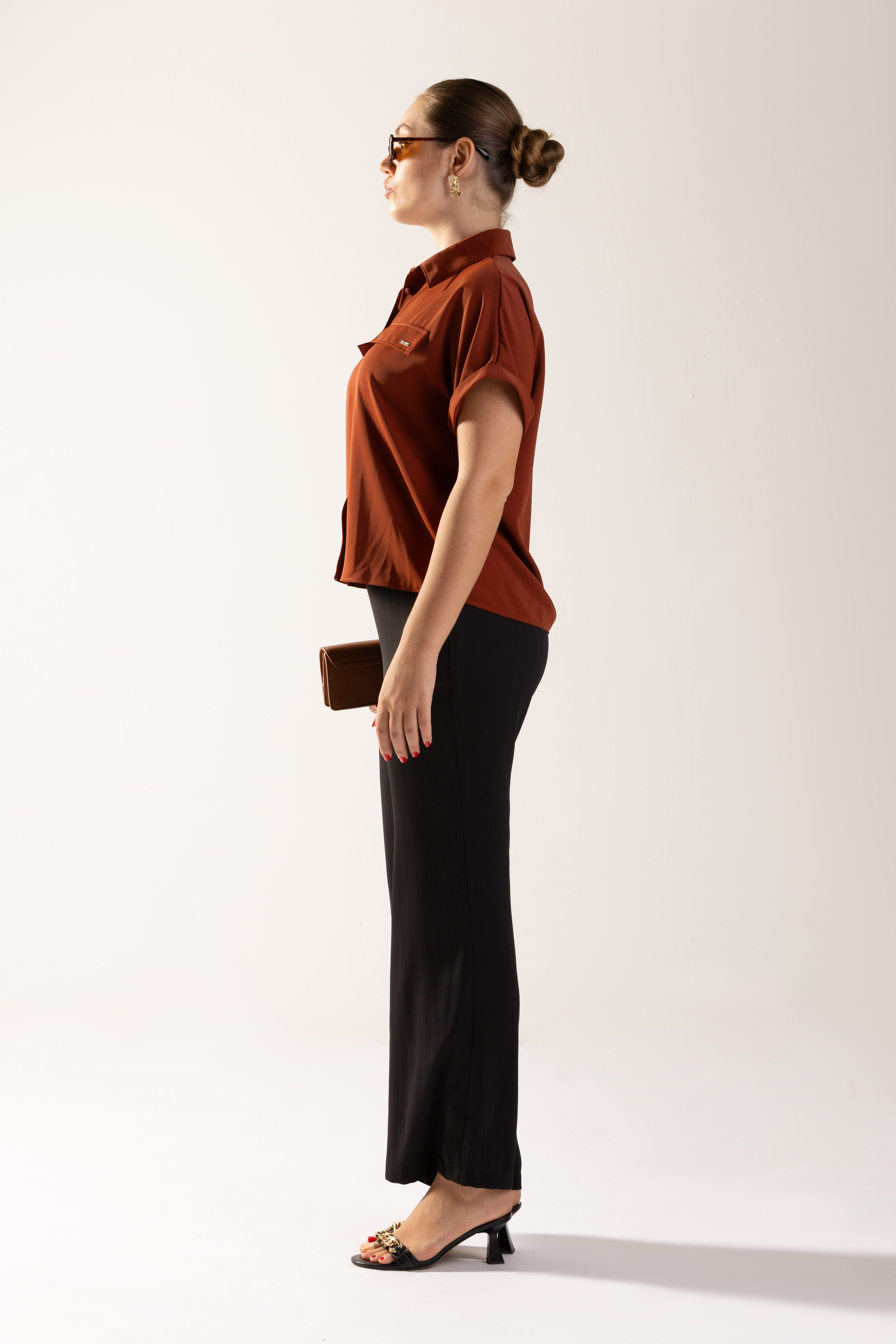 A classic short-sleeve shirt designed for effortless, everyday sophistication. Featuring a clean button-down front, structured collar, and subtle pocket detailing, it offers a relaxed yet polished silhouette. Easy to tuck in or wear loose, this versatile top pairs seamlessly with tailored pants, skirts, or denim. Ideal for work or smart-casual styling, it’s a timeless wardrobe essential that delivers comfort, confidence, and refined style throughout the day.