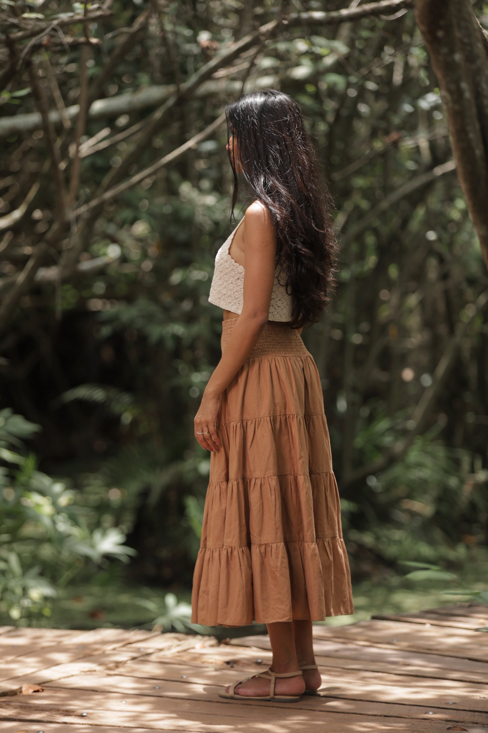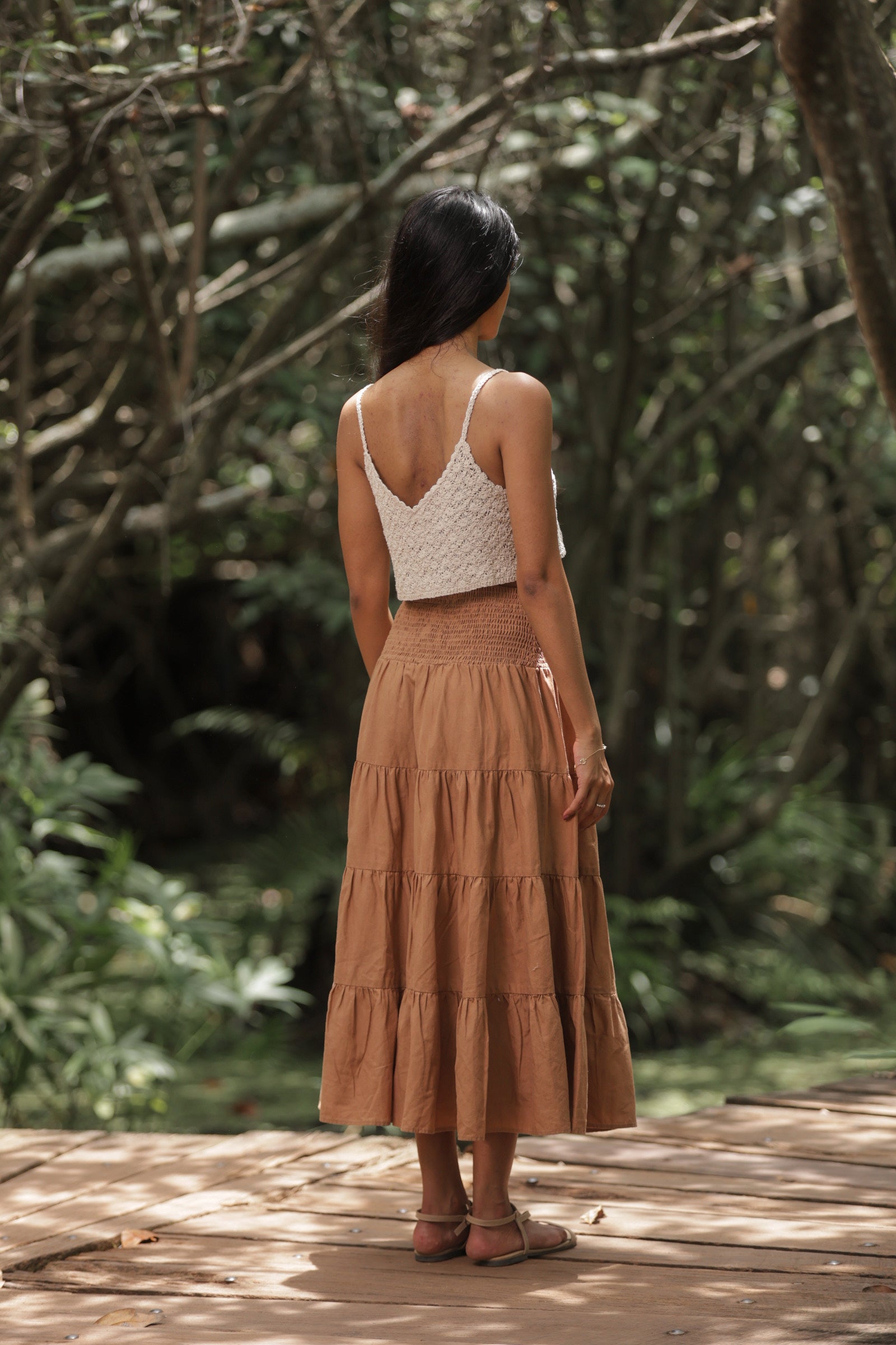 This solid linen cotton midi skirt brings effortless charm and comfort to everyday wear. Designed with a soft layered silhouette, it offers graceful movement and a relaxed fit for all-day ease. The breathable linen cotton blend enhances comfort while maintaining a refined, natural texture. Perfect for pairing with cropped tops or tucked-in shirts, this versatile skirt adds a touch of timeless elegance to your casual and semi-formal looks.