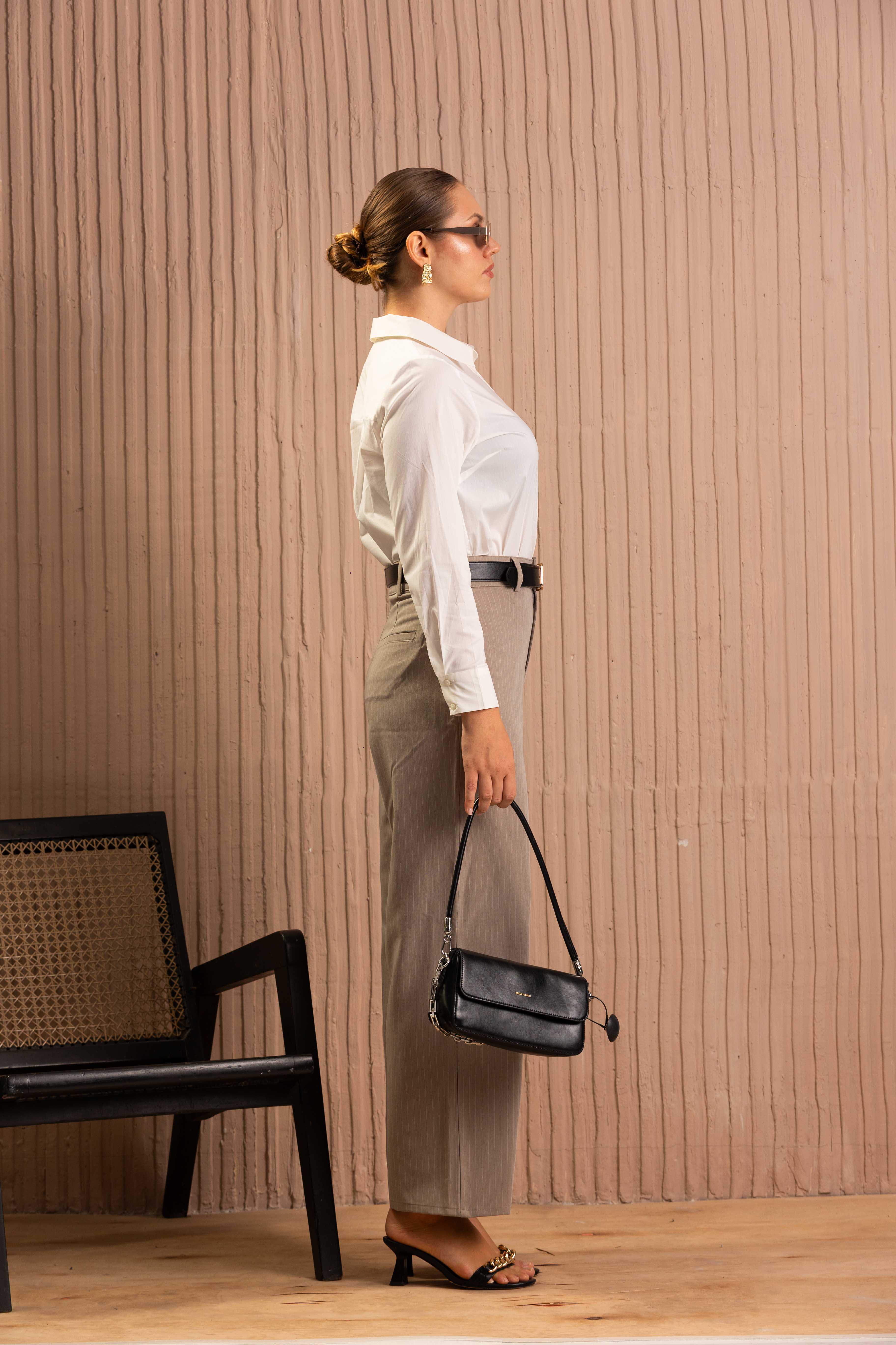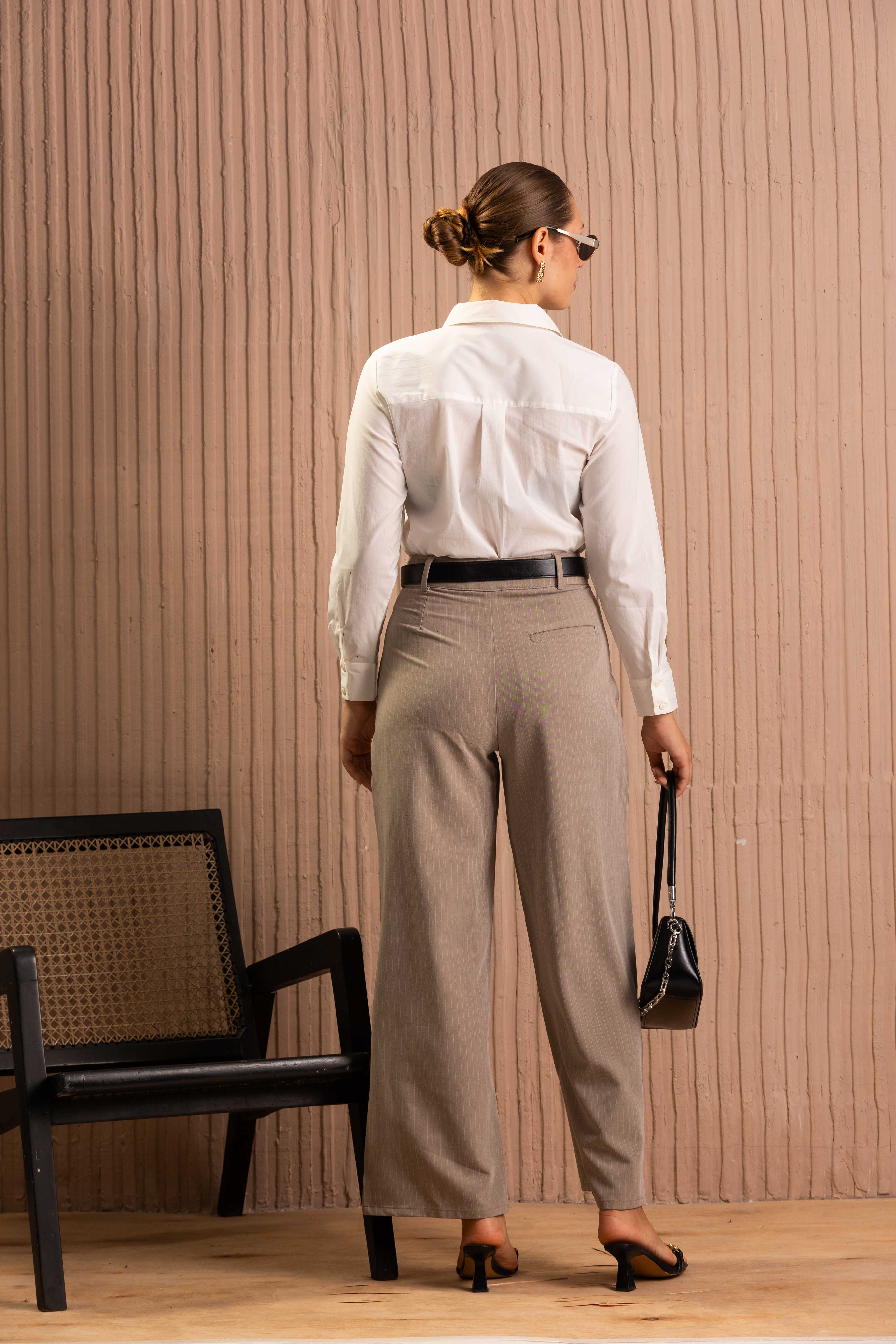 Tailored for effortless structure, this pant is designed to bring balance and confidence to everyday workwear. Featuring a clean straight cut with a relaxed drape, it offers ease of movement while maintaining a sharp, polished finish. The refined pin detail adds subtle character without overpowering the silhouette, making it a versatile essential for modern wardrobes. Easy to pair with structured tops or soft layers, this pant transitions seamlessly from work hours to after-hours with understated sophistication.