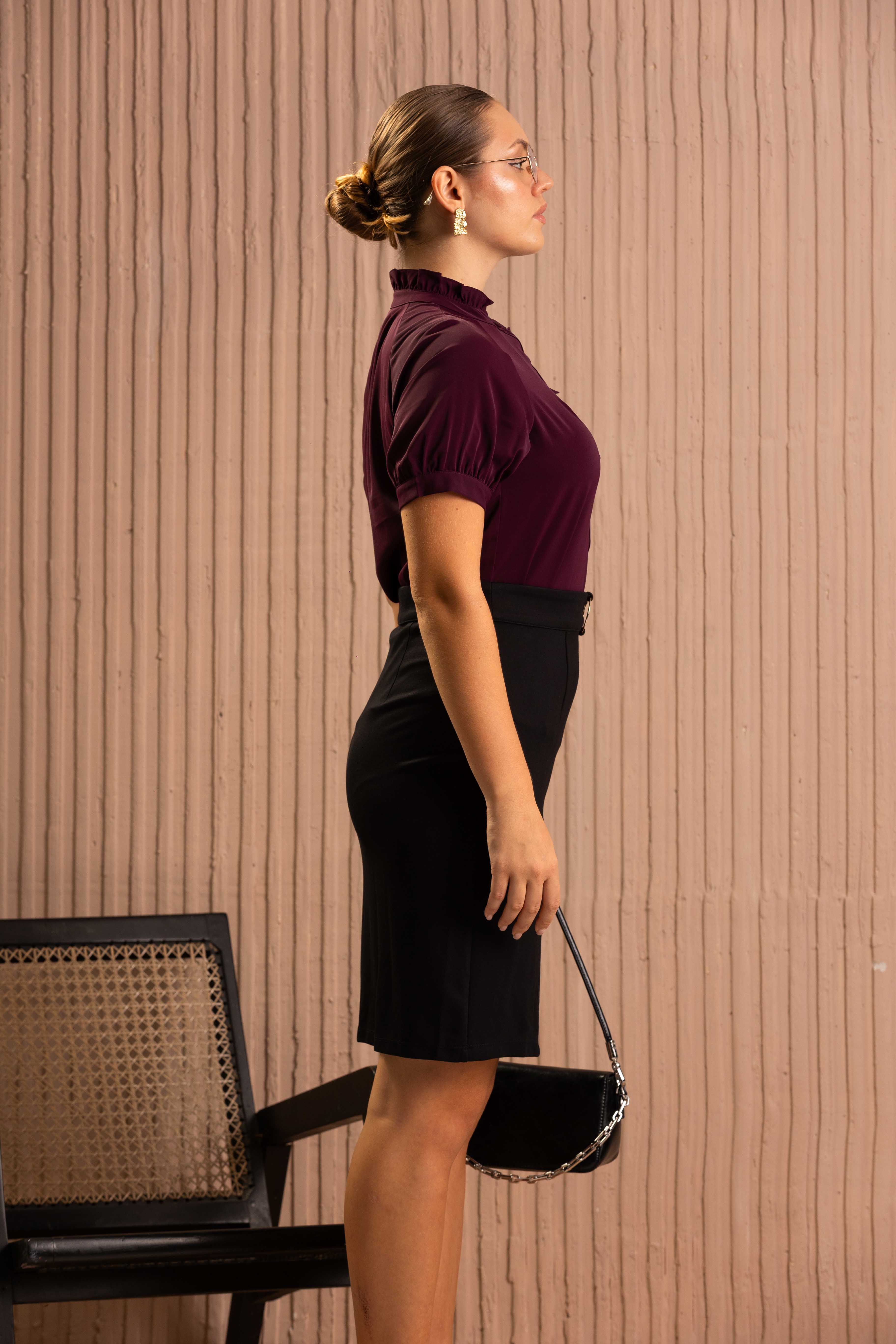 Crafted for confident everyday dressing, this midi skirt features a clean, structured silhouette that flatters while allowing ease of movement. Thoughtful tailoring and a refined finish make it ideal for long workdays, transitioning seamlessly from meetings to after-hours plans. A versatile wardrobe essential designed to bring balance between polish and comfort.