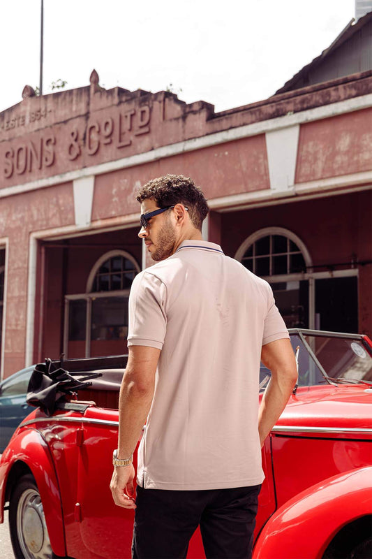 A refined essential designed for the man who prefers subtle standout details. This polo features a signature collar with clean gridline tipping that adds a modern, tailored edge without overpowering the minimalist silhouette. Crafted with a structured placket and smooth knit fabric, it offers all-day comfort and a polished appearance. The understated chest emblem finishes the look with a touch of sophistication, making this polo perfect for both smart and casual settings.