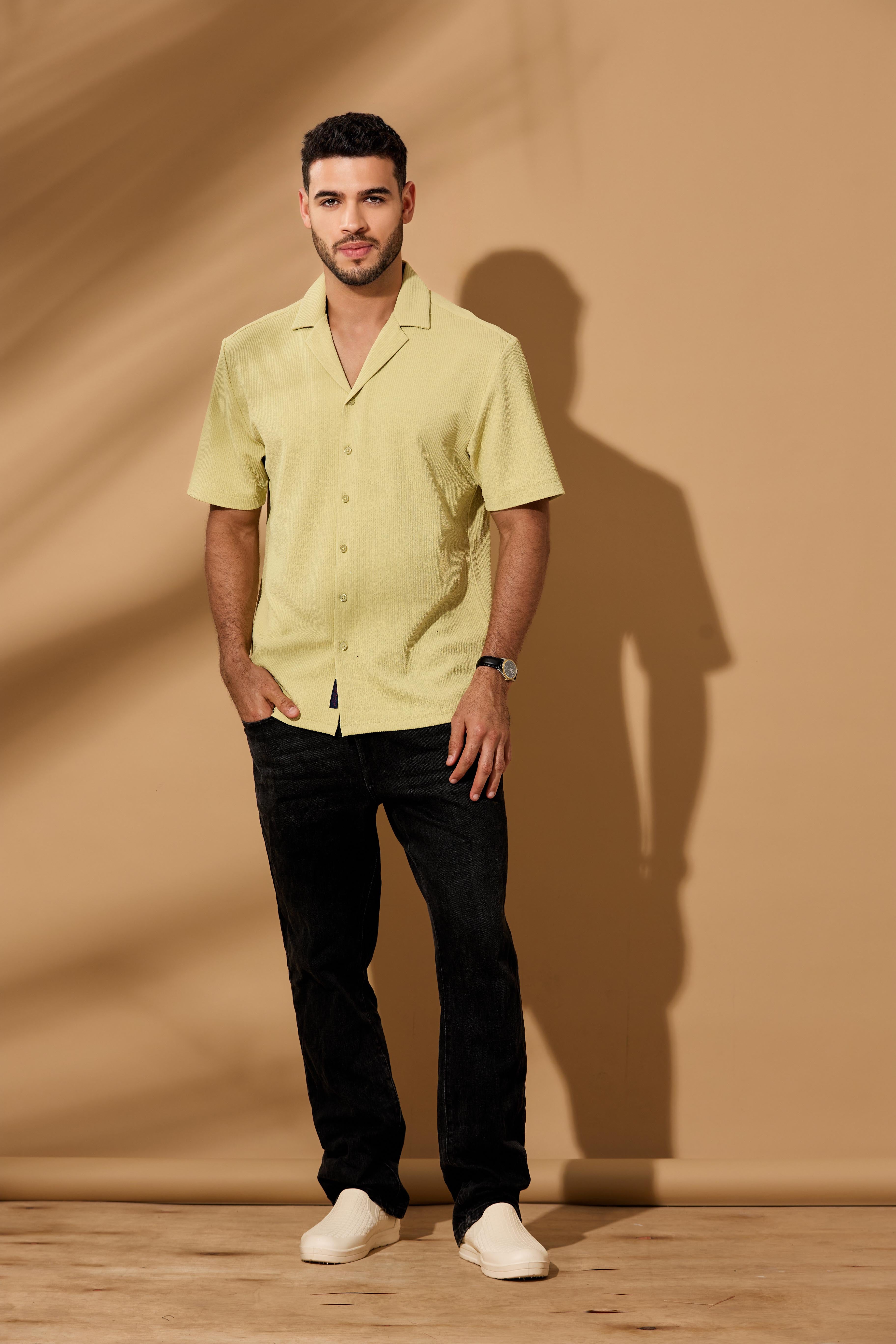 The Riviera Waffle Resort Shirt is designed for effortless warm-weather sophistication. Crafted from a lightweight, breathable fabric with a refined waffle-textured surface, it delivers a soft hand feel while adding subtle depth and character to the look. The open resort collar creates a relaxed, contemporary silhouette, complemented by a clean button-through front and neatly finished short sleeves. With its smooth drape and tailored fit, this shirt offers comfort, airflow, and a polished profile—perfect for elevated casual styling from daytime outings to laid-back evening occasions.