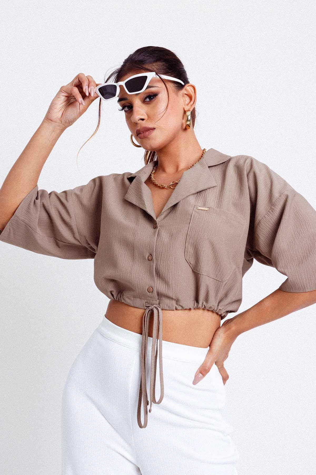 Harper Button Down Crop Top