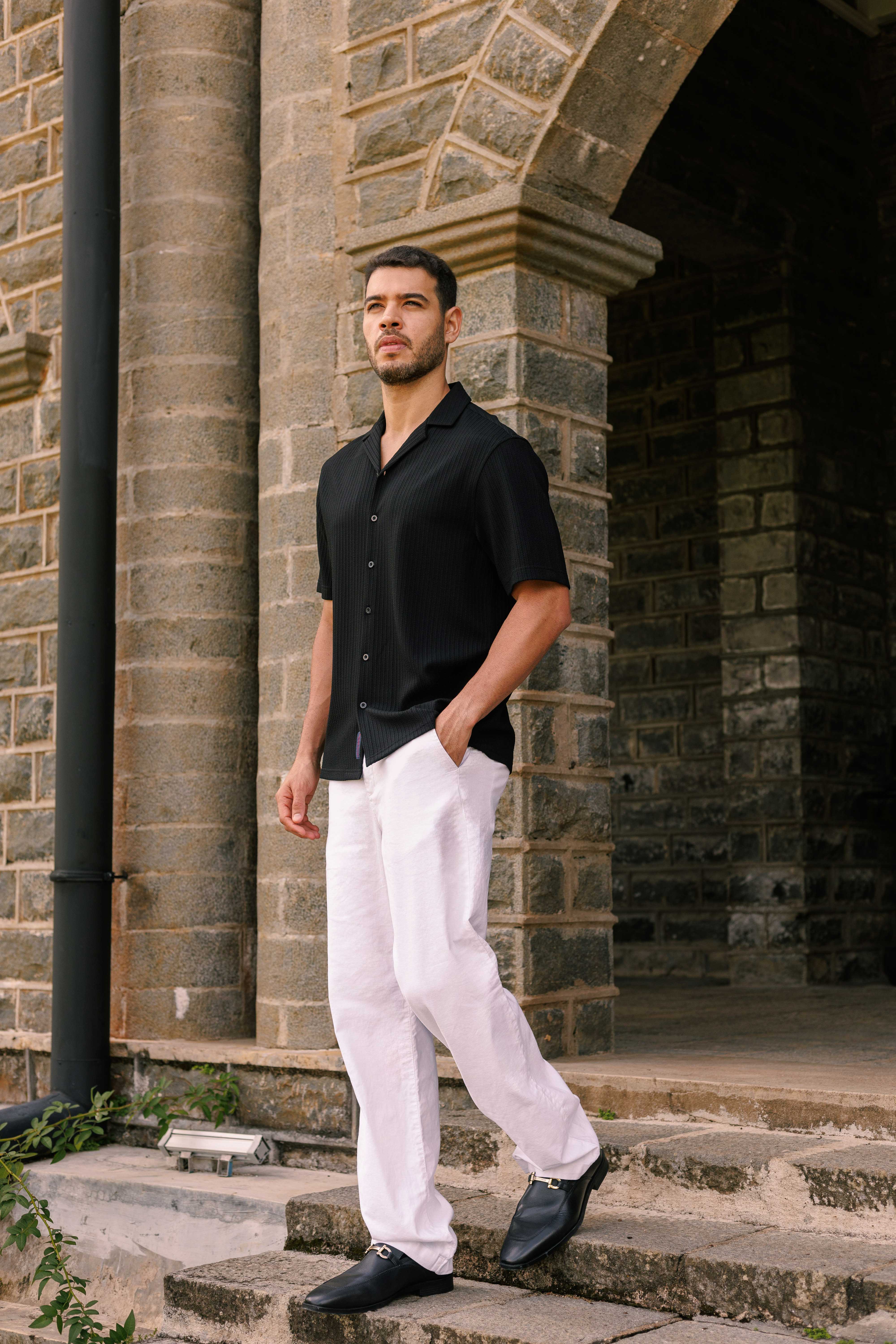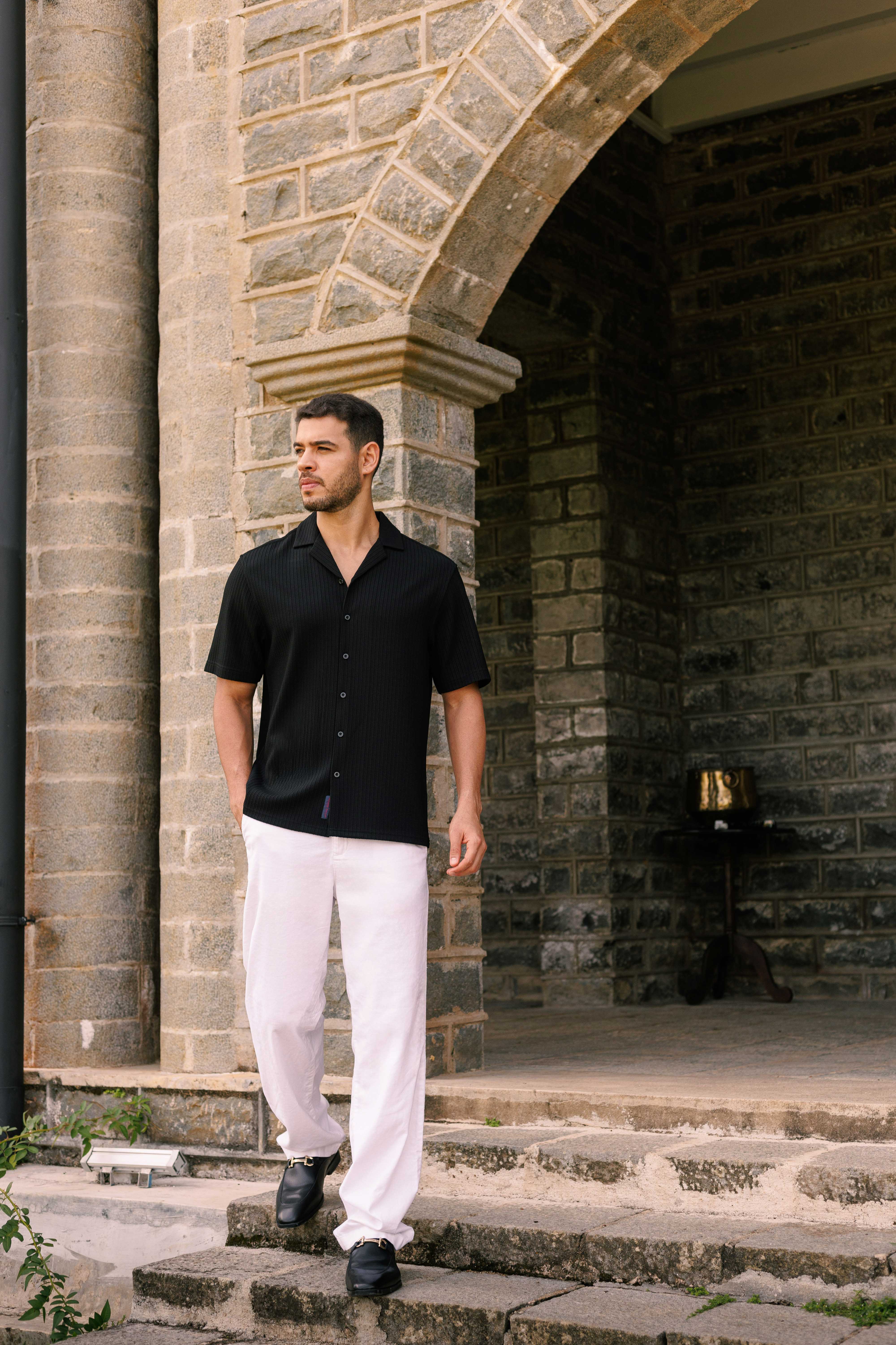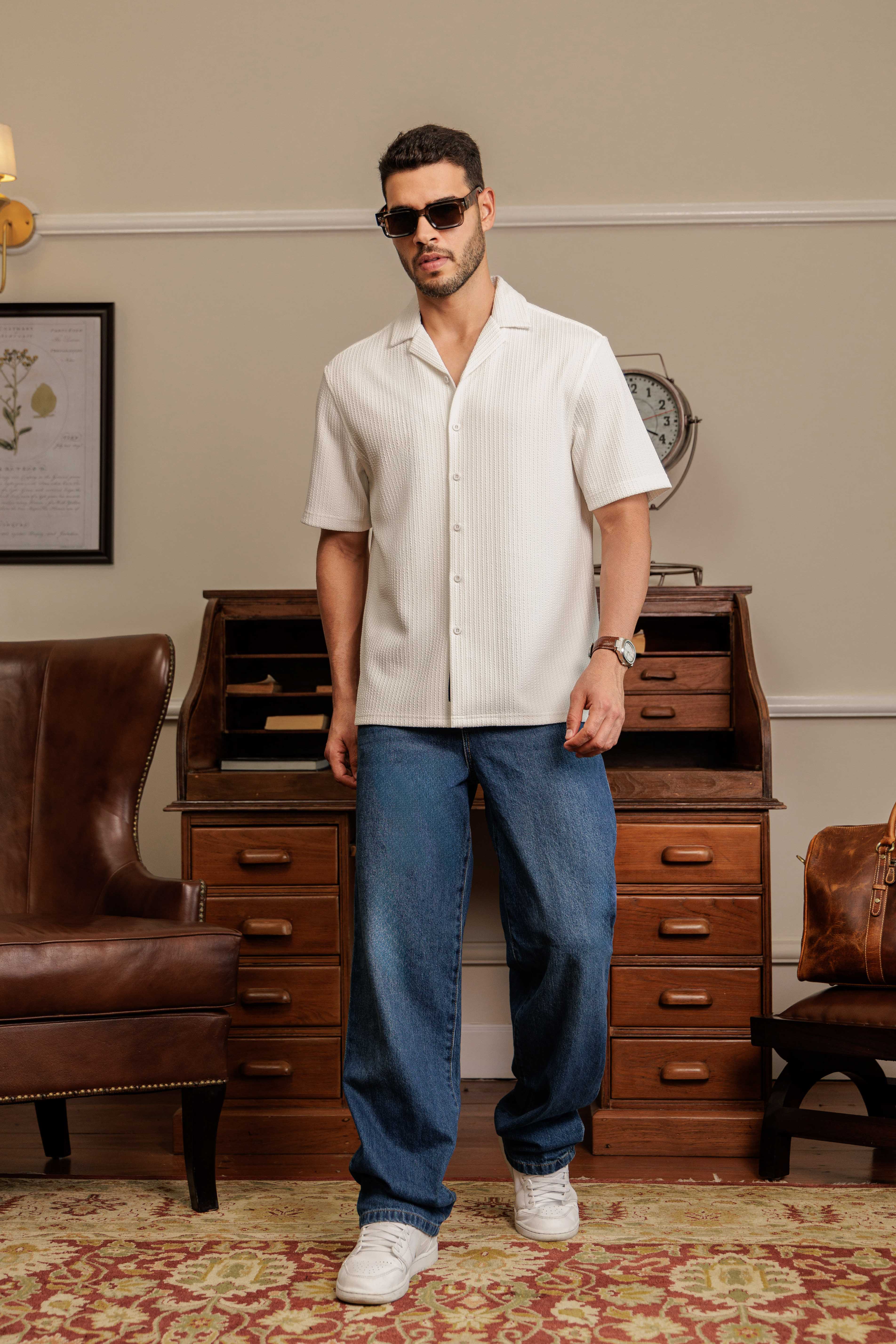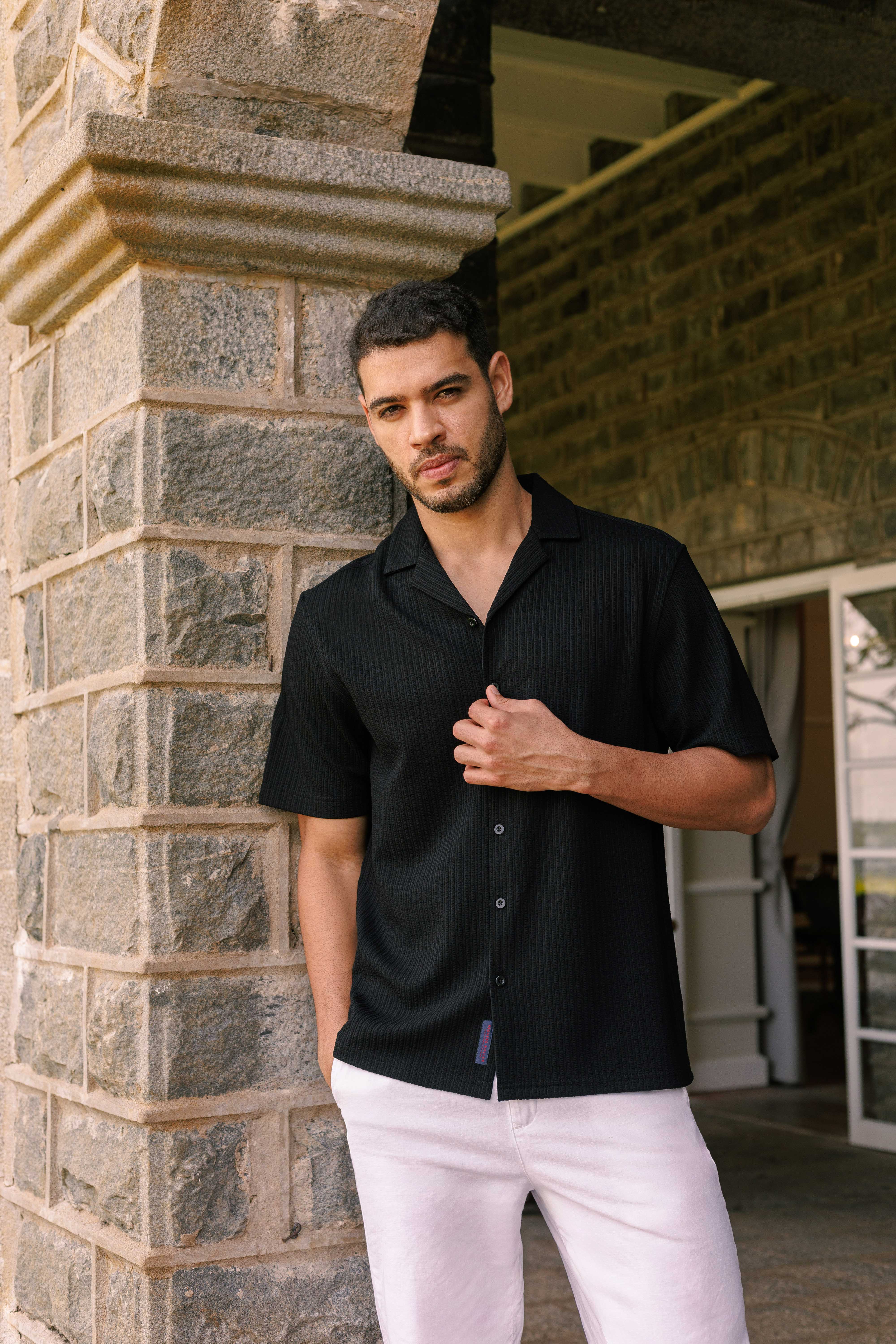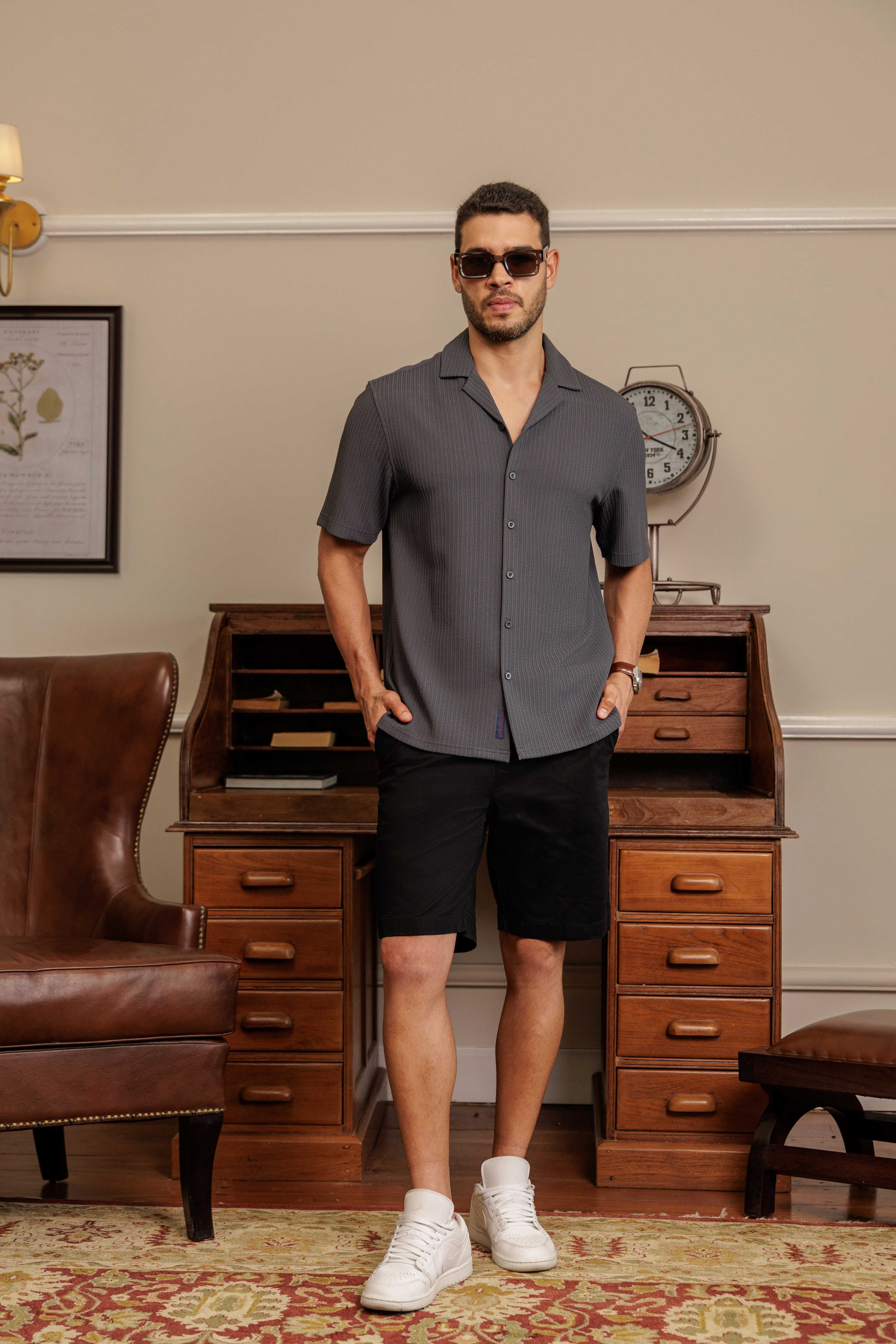 An effortless blend of structure and ease, this short-sleeve shirt is crafted from a lightly textured fabric that offers both breathability and a refined hand feel. The open-collar design, relaxed drape, and subtle surface texture give it an understated sophistication suited for everyday wear or elevated casual moments. Designed with clean tailoring and soft movement, it captures the essence of modern comfort and timeless simplicity.