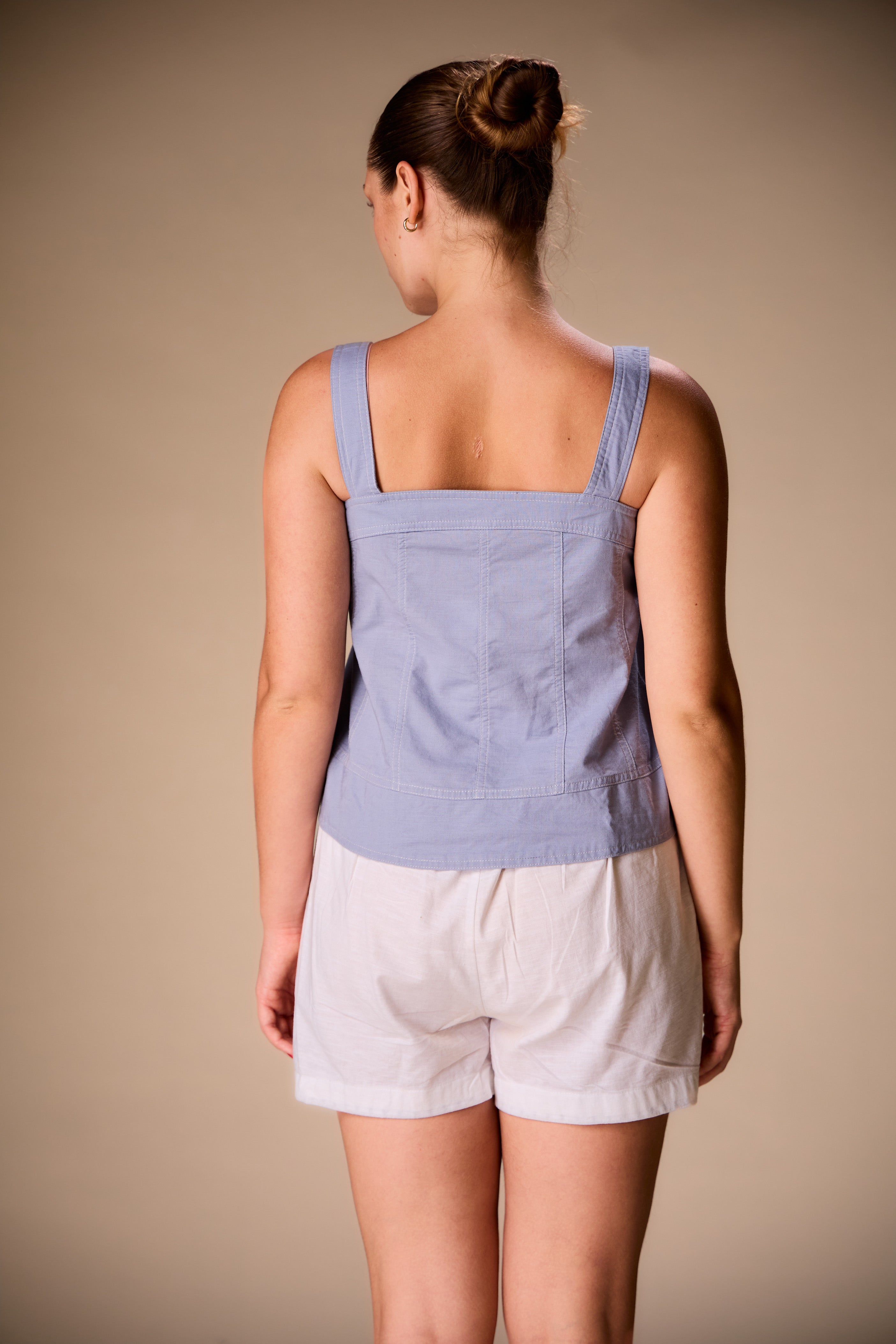 This loose-fitted top is designed for effortless comfort and everyday style. Featuring a flattering square neckline, it brings a modern touch to a relaxed silhouette. Subtle contrast thread detailing adds visual interest while keeping the look minimal and refined. Lightweight and easy to wear, this versatile top pairs beautifully with pants, skirts, or shorts, making it a timeless wardrobe essential for casual outings or relaxed workwear.