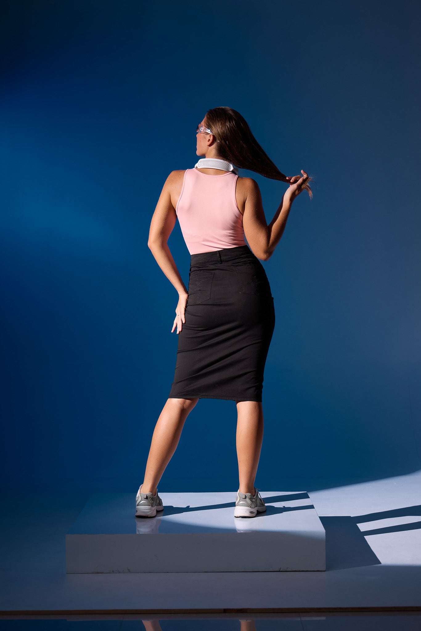 A sleek tank bodysuit crafted for a sculpted, streamlined silhouette with effortless appeal. Designed with a classic scoop neckline, it offers a timeless shape that flatters without feeling restrictive. The smooth fit tucks perfectly into any bottom, making it a go-to piece for layering or wearing solo. Finished with a snap closure at the gusset for easy wear, this bodysuit combines clean minimalism with everyday versatility.