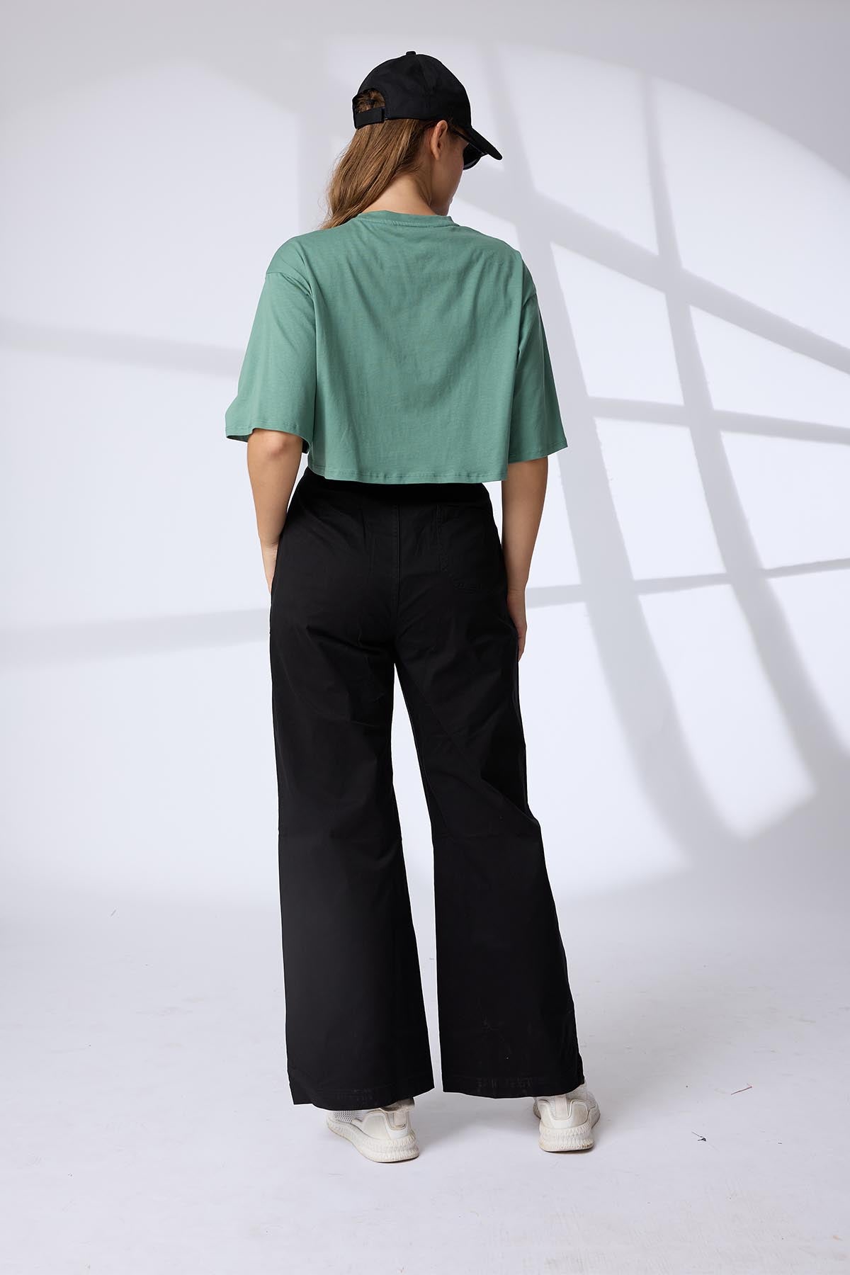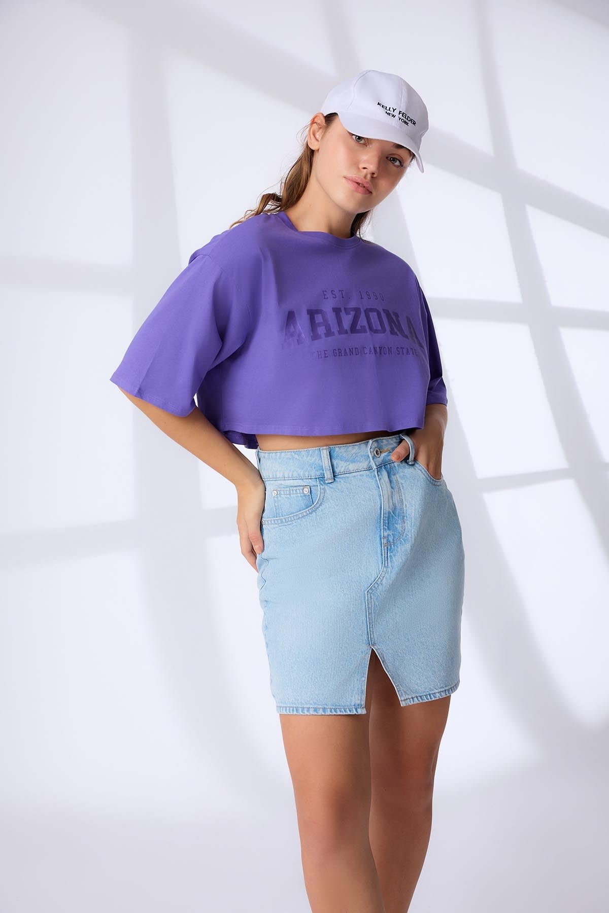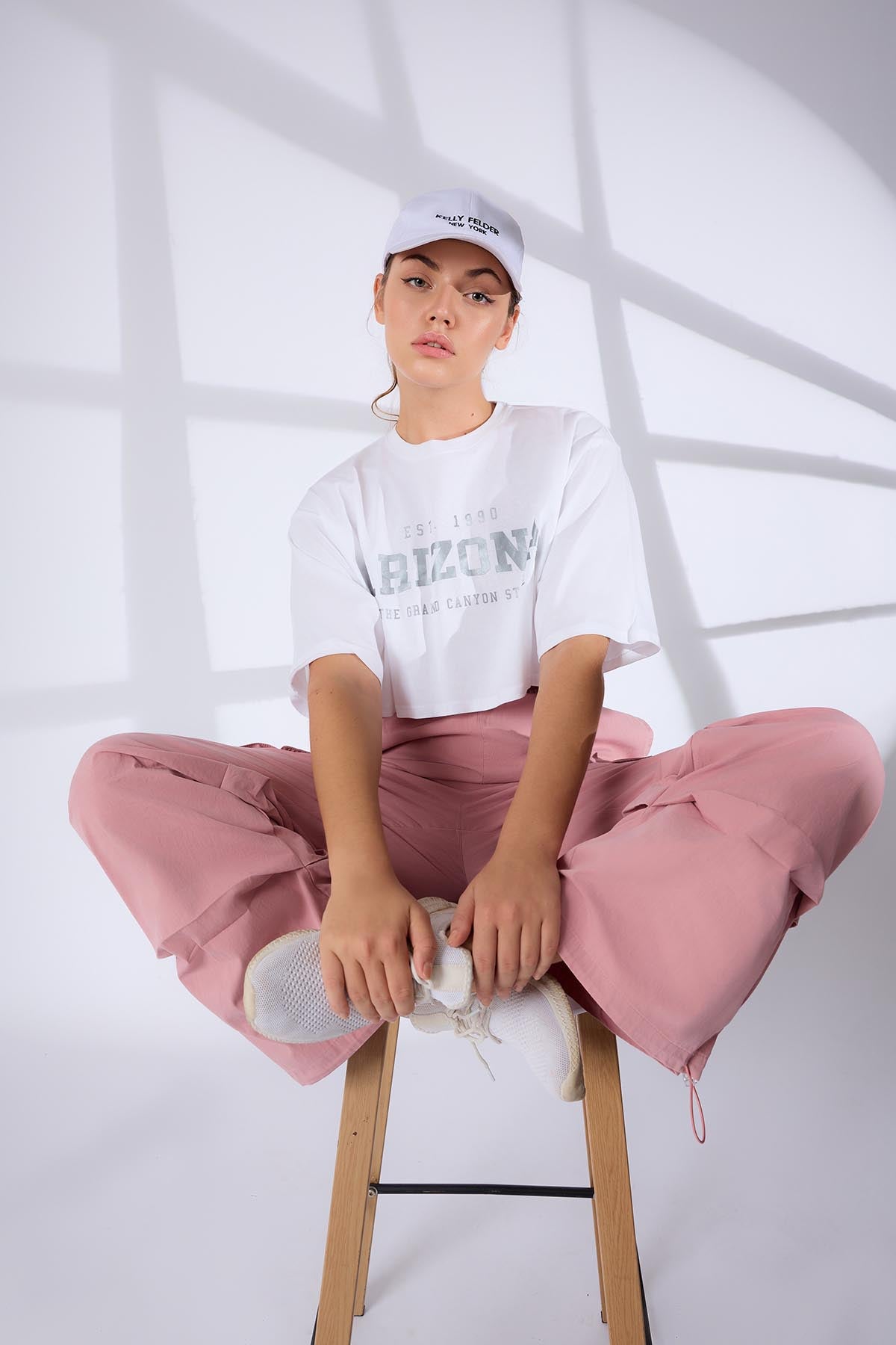 Elevated in its simplicity, this cropped top is crafted from 100% cotton, delivering breathable comfort with a refined touch. The standout feature—a ChromoShine print—adds an iridescent, light-reflective finish that catches the eye with every movement, transforming a minimal staple into a statement piece.