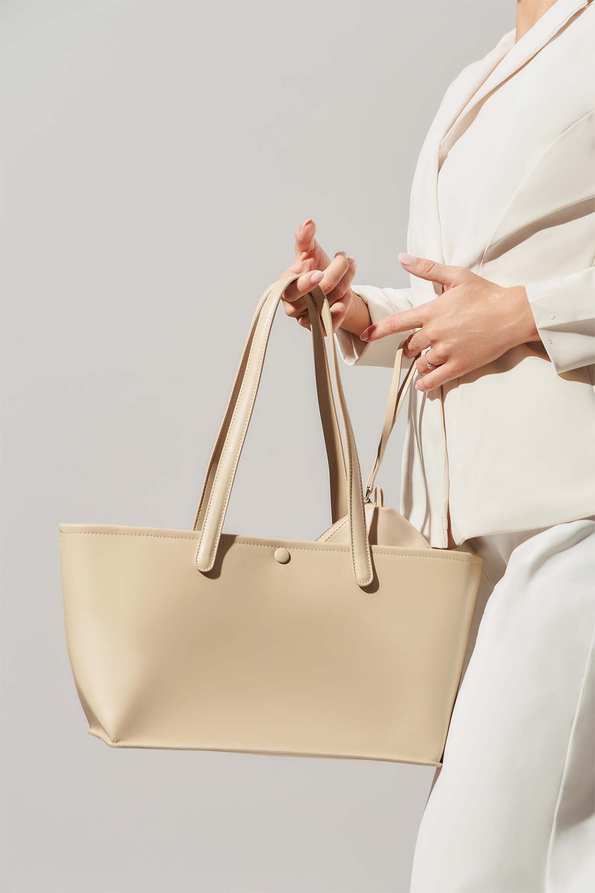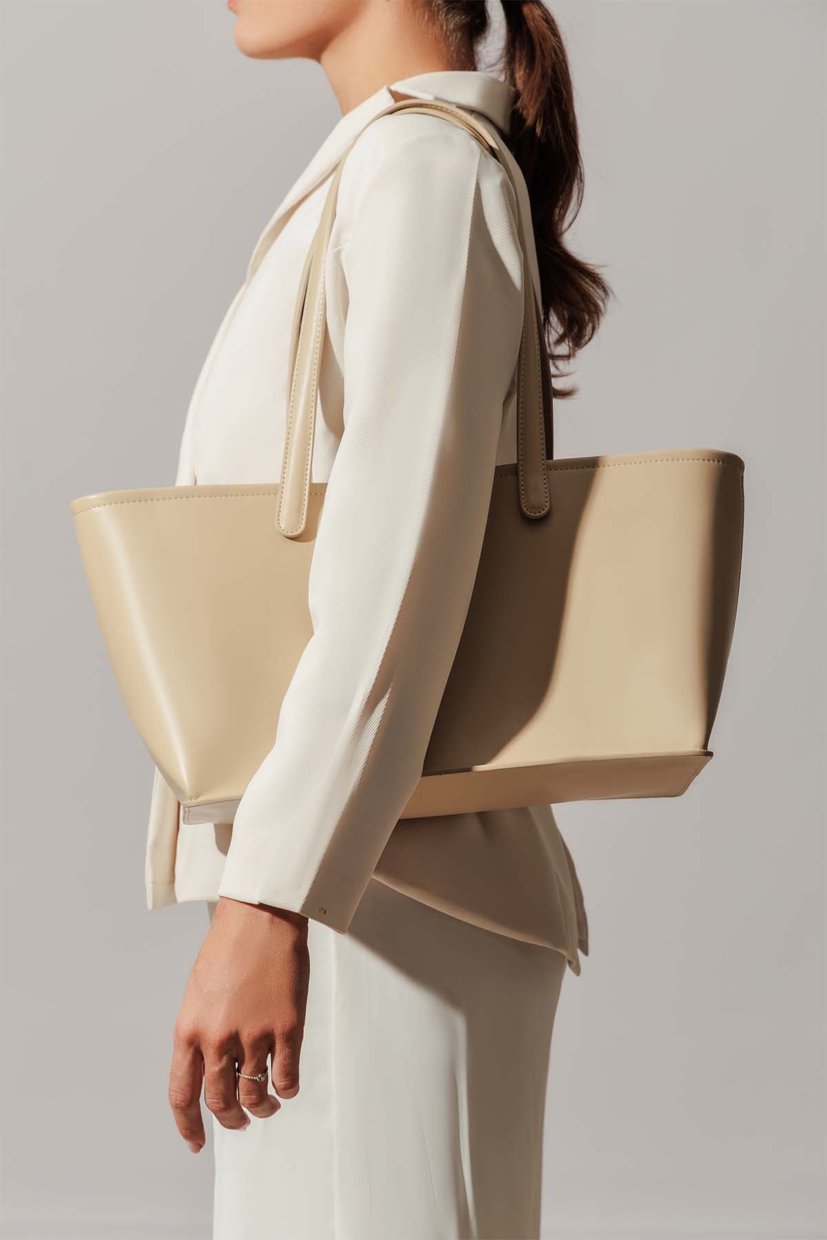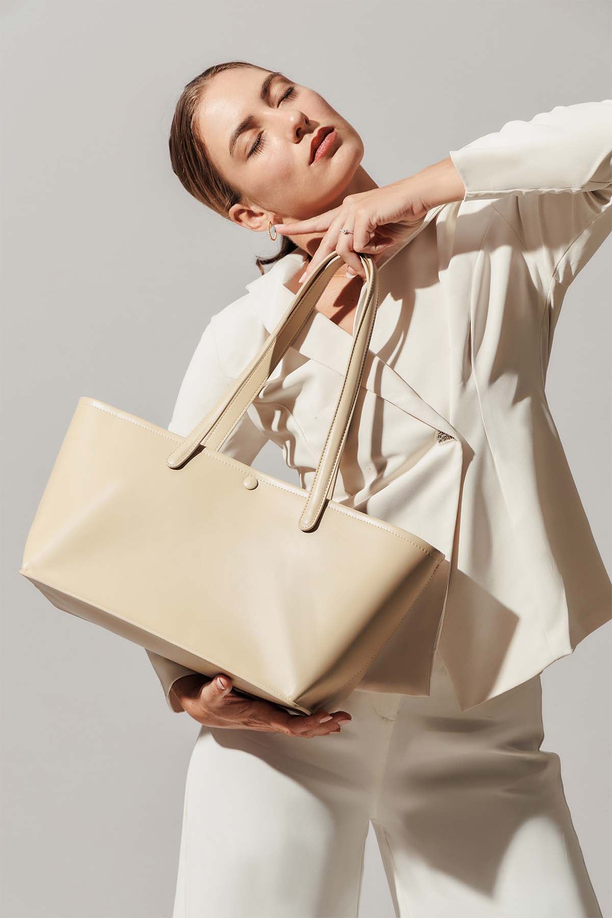 Refined lines meet everyday versatility. Crafted in smooth cowhide, The Berth Quarter Tote includes an extra pouch and comes in bold black or soft cream — a design that holds its shape and its sophistication, wherever you dock.