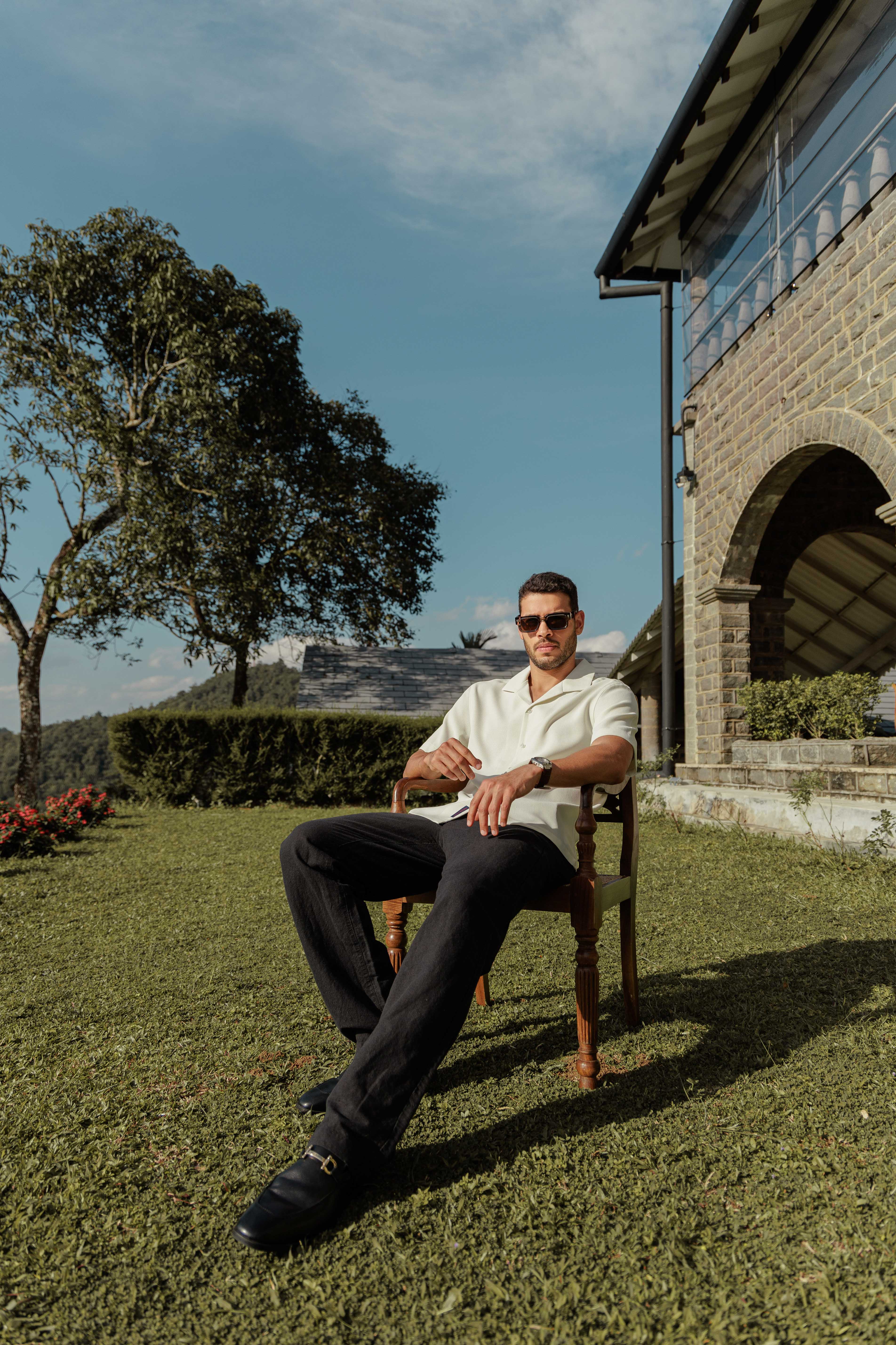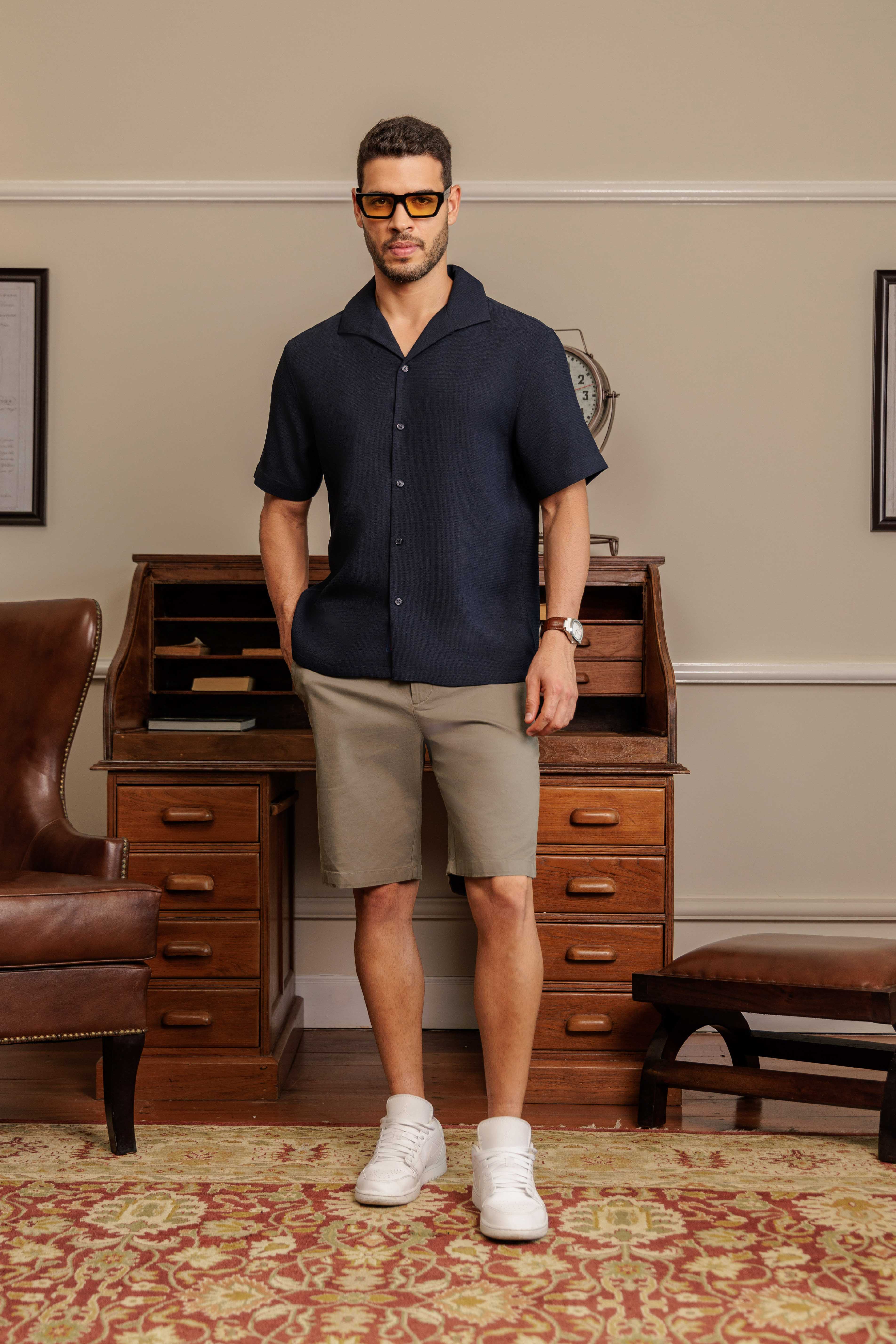 An effortless blend of structure and ease, this short-sleeve shirt is crafted from a lightly textured fabric that offers both breathability and a refined hand feel. The open-collar design, relaxed drape, and subtle surface texture give it an understated sophistication suited for everyday wear or elevated casual moments. Designed with clean tailoring and soft movement, it captures the essence of modern comfort and timeless simplicity.