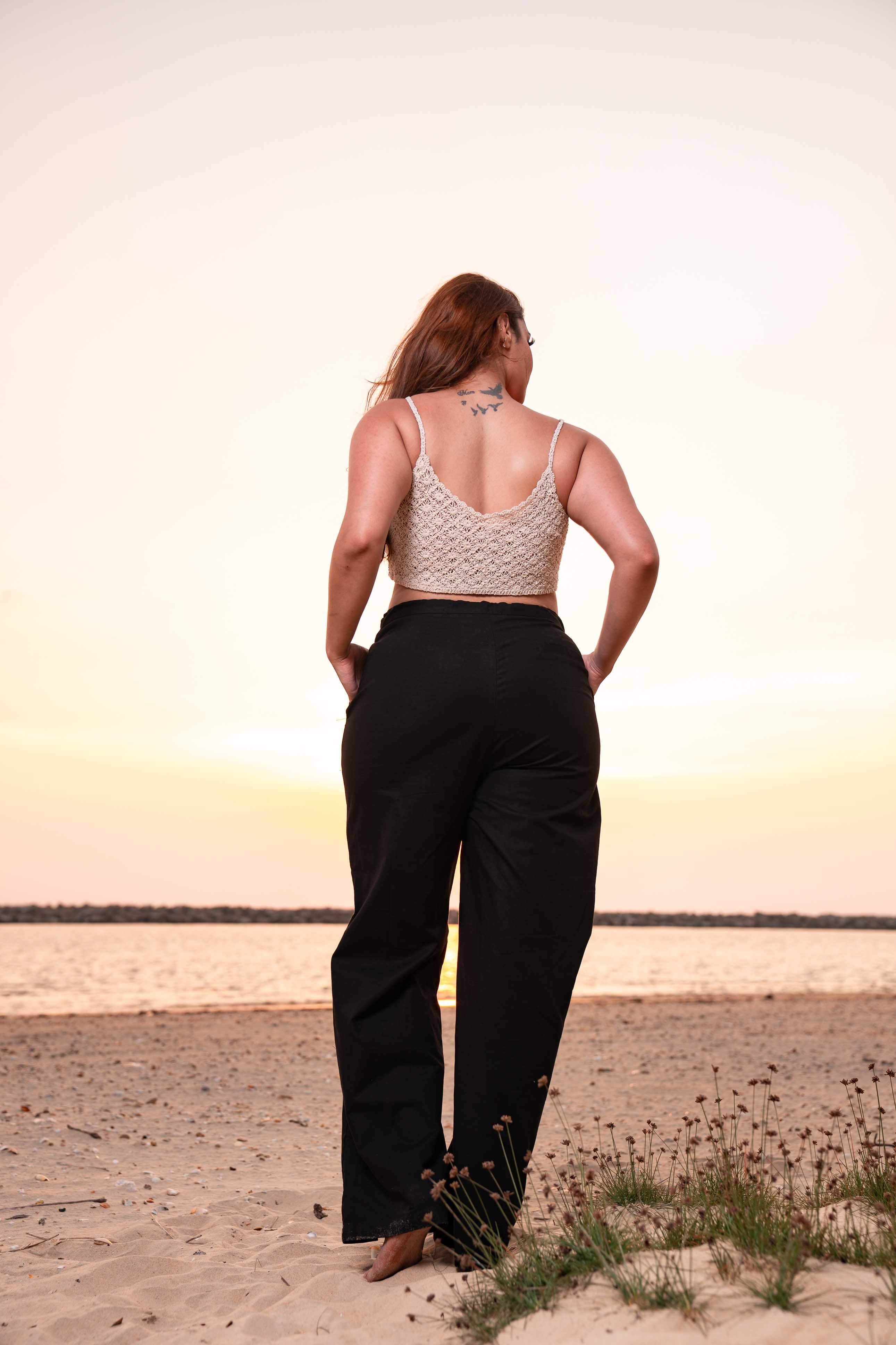 These loose-fitted linen-cotton pants are designed for effortless movement and everyday ease. Featuring a soft waist tie detail and practical side pockets, they offer a relaxed silhouette with a touch of structure. Made from breathable, lightweight fabric, they’re perfect for warm days, slow mornings, and everything in between.