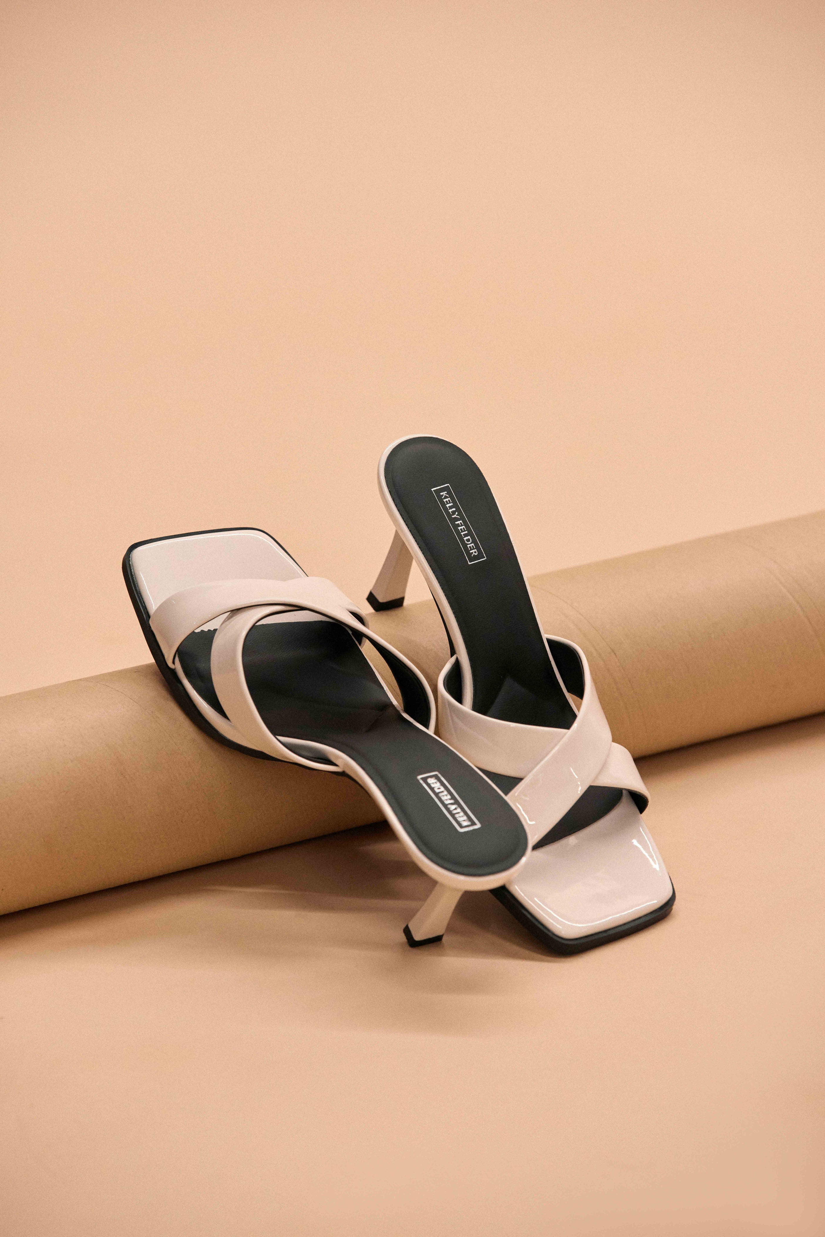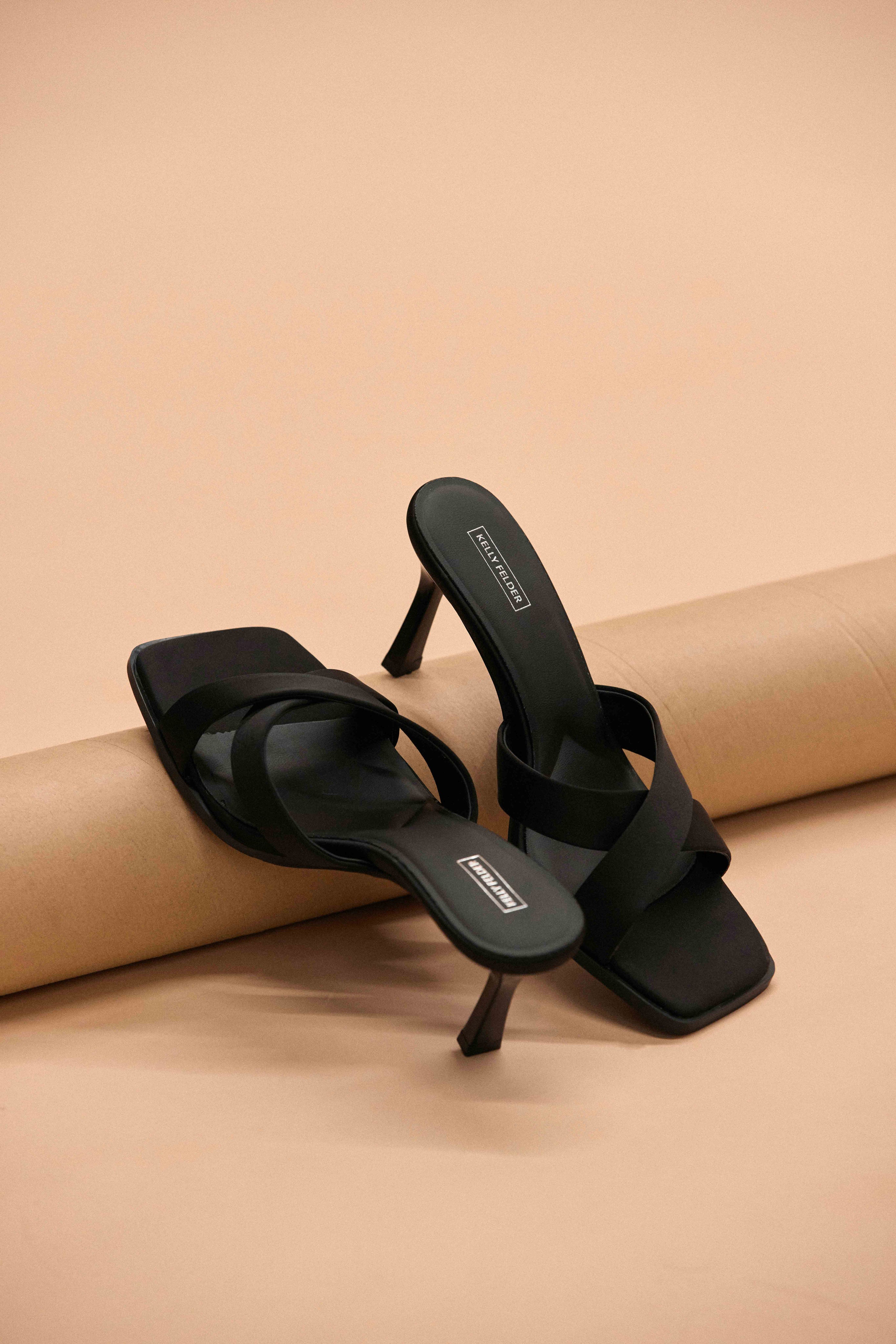*Elegant women’s heeled mule sandals with a modern square-toe design.