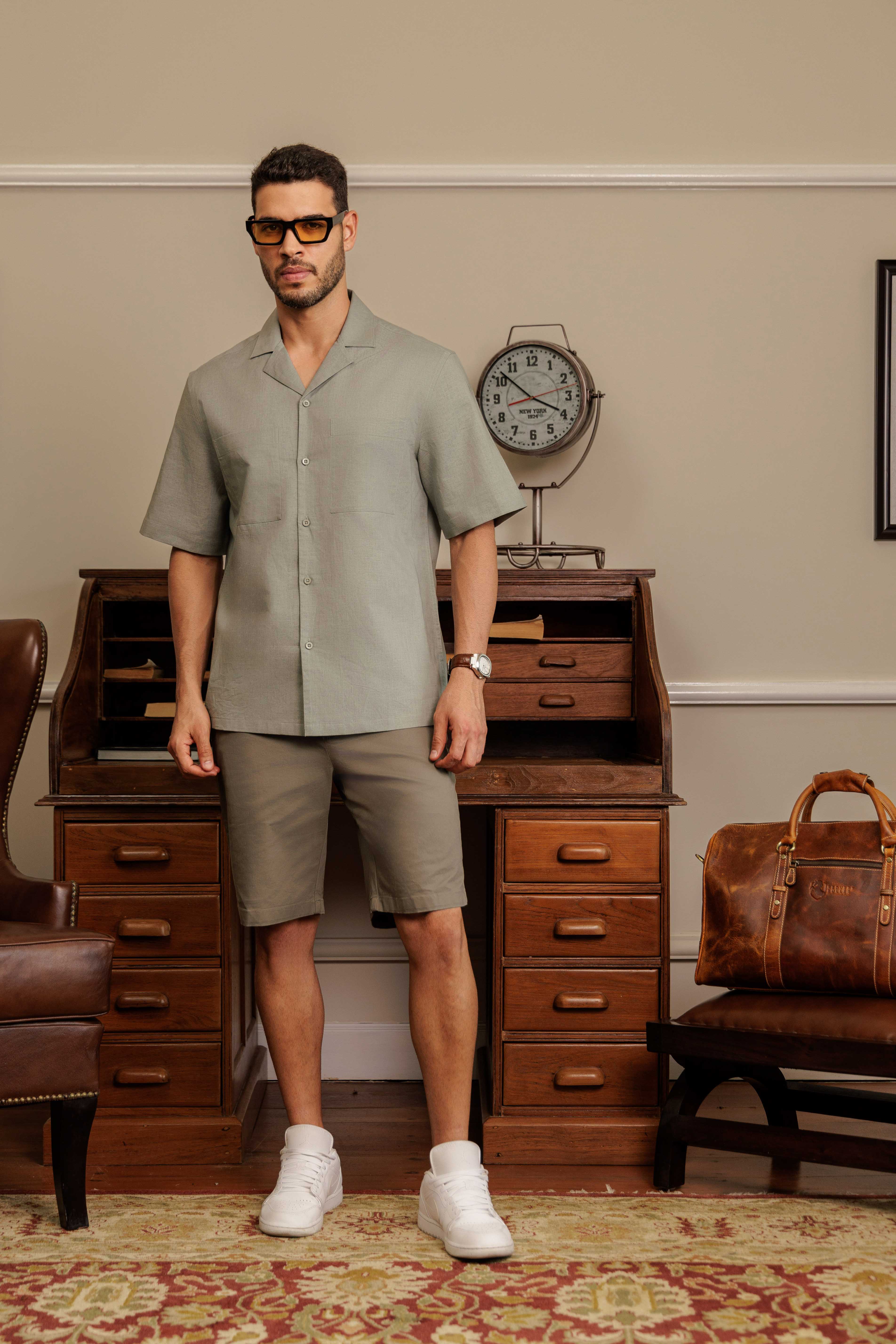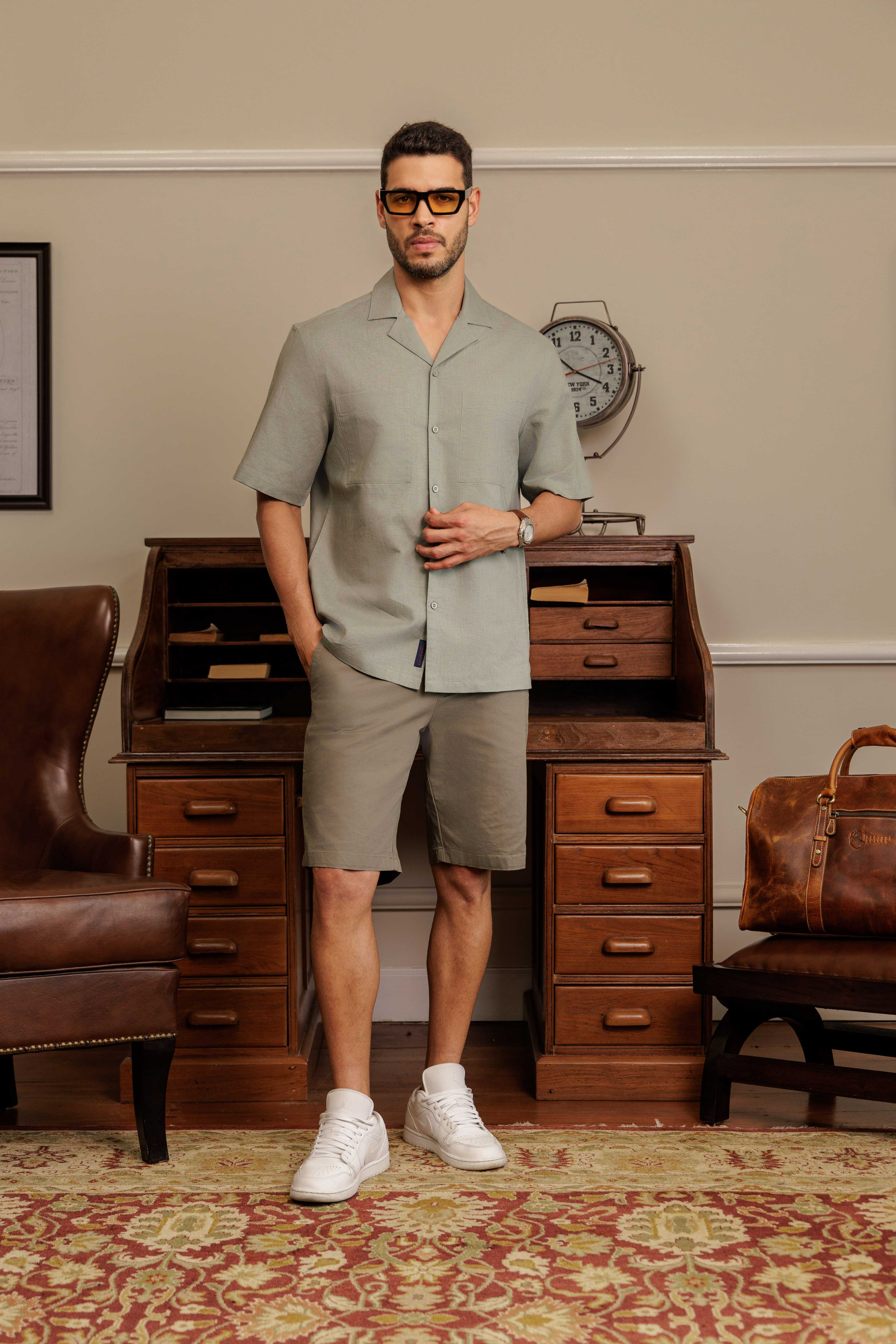 An effortless blend of structure and ease, this short-sleeve shirt is crafted from a lightly textured fabric that offers both breathability and a refined hand feel. The open-collar design, relaxed drape, and subtle surface texture give it an understated sophistication suited for everyday wear or elevated casual moments. Designed with clean tailoring and soft movement, it captures the essence of modern comfort and timeless simplicity.