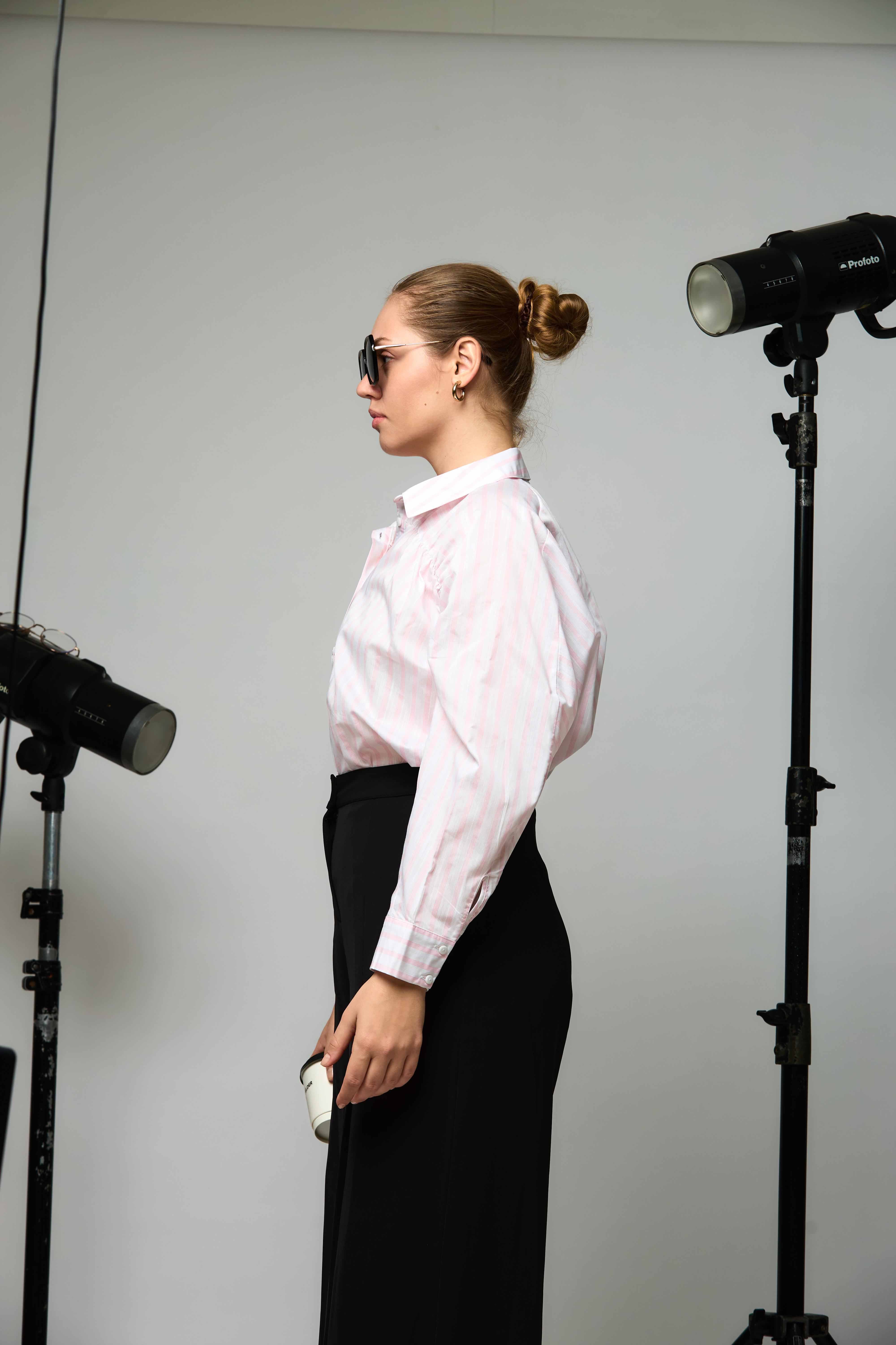 This is a fresh, modern take on the classic work shirt, perfect for adding a touch of softness to tailored looks.