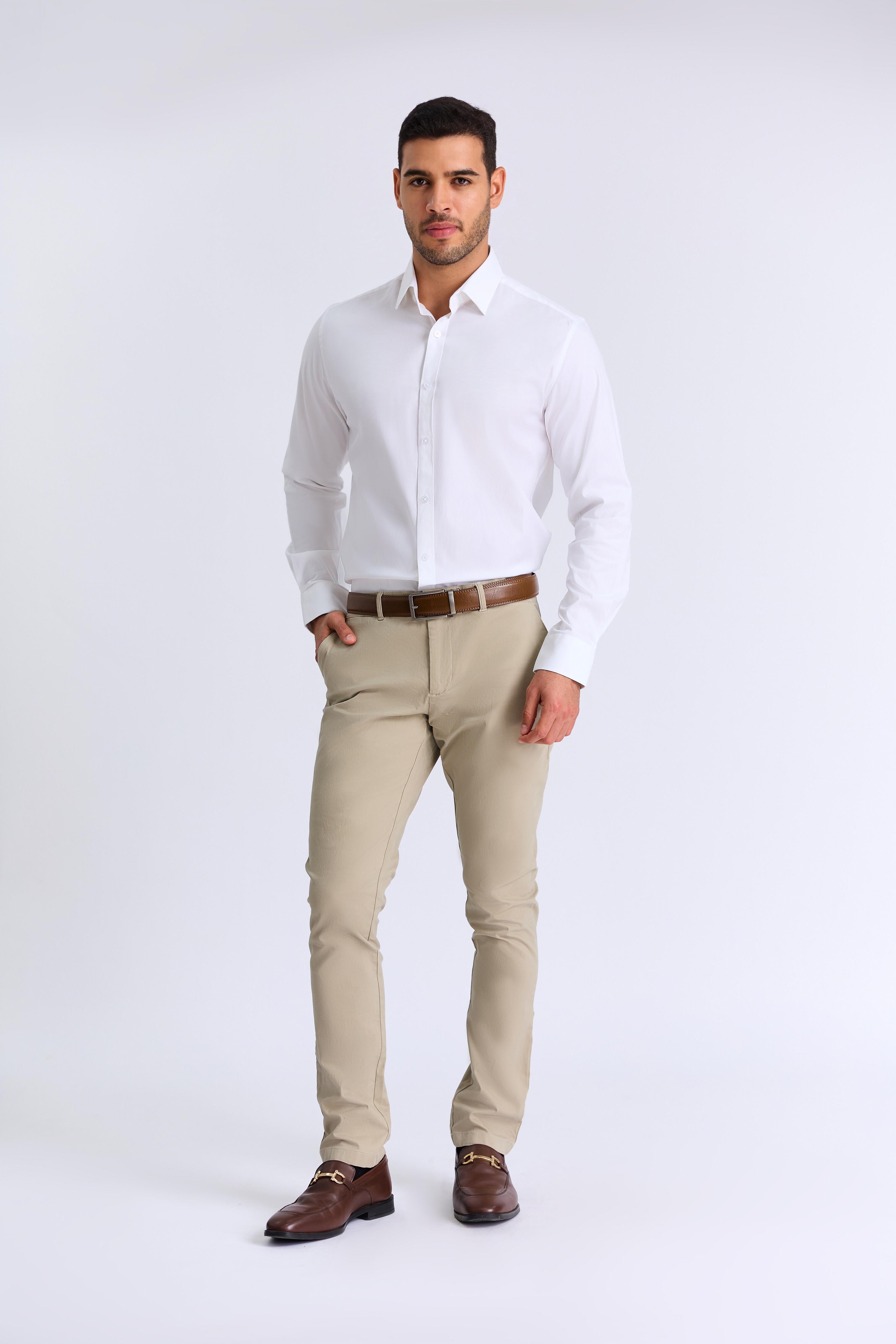 This formal slim-fit shirt delivers a refined balance of sophistication and everyday versatility. Tailored from a lightweight woven fabric with a smooth, breathable texture, it offers a polished appearance that transitions seamlessly from office meetings to evening occasions. The shirt features a structured collar, and clean cuffs that enhance its crisp silhouette. Designed for a modern fit that contours naturally to the body, it ensures all-day comfort and effortless elegance when paired with formal trousers or chinos.
