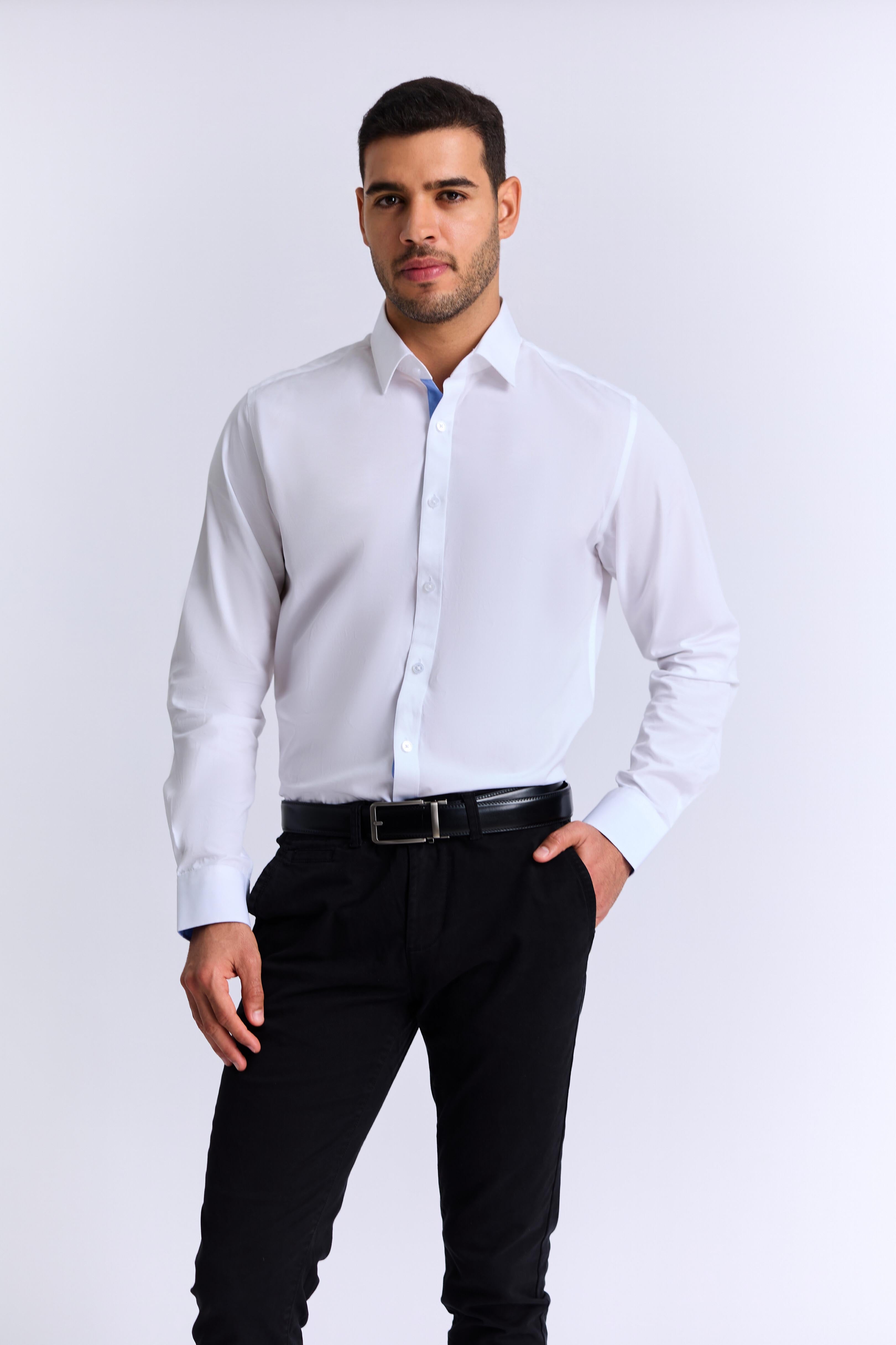 This formal slim-fit shirt delivers a refined balance of sophistication and everyday versatility. Tailored from a lightweight woven fabric with a smooth, breathable texture, it offers a polished appearance that transitions seamlessly from office meetings to evening occasions. The shirt features a structured collar, and clean cuffs that enhance its crisp silhouette. Designed for a modern fit that contours naturally to the body, it ensures all-day comfort and effortless elegance when paired with formal trousers or chinos.