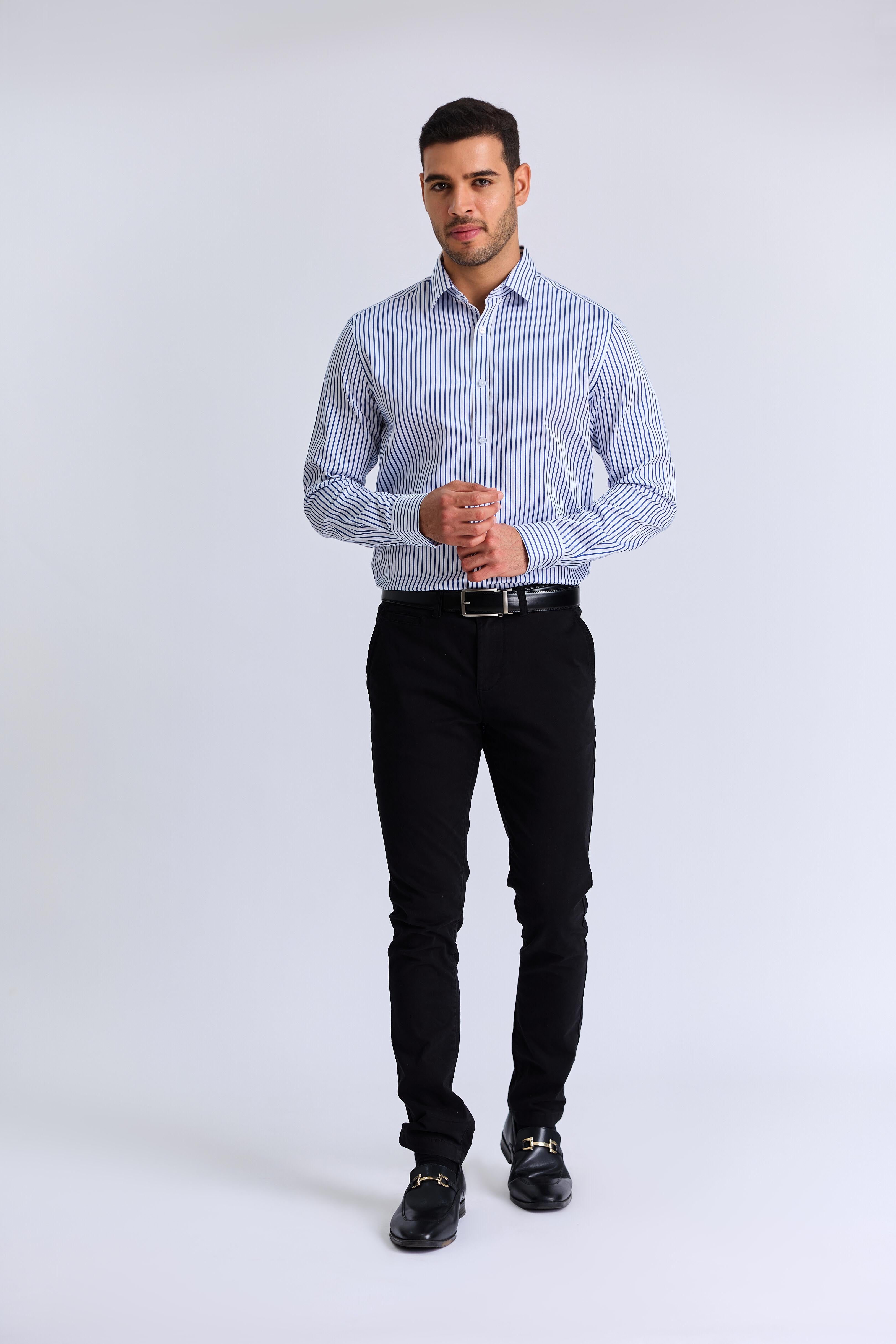This formal slim-fit shirt delivers a refined balance of sophistication and everyday versatility. Tailored from a lightweight woven fabric with a smooth, breathable texture, it offers a polished appearance that transitions seamlessly from office meetings to evening occasions. The shirt features a structured collar, and clean cuffs that enhance its crisp silhouette. Designed for a modern fit that contours naturally to the body, it ensures all-day comfort and effortless elegance when paired with formal trousers or chinos.