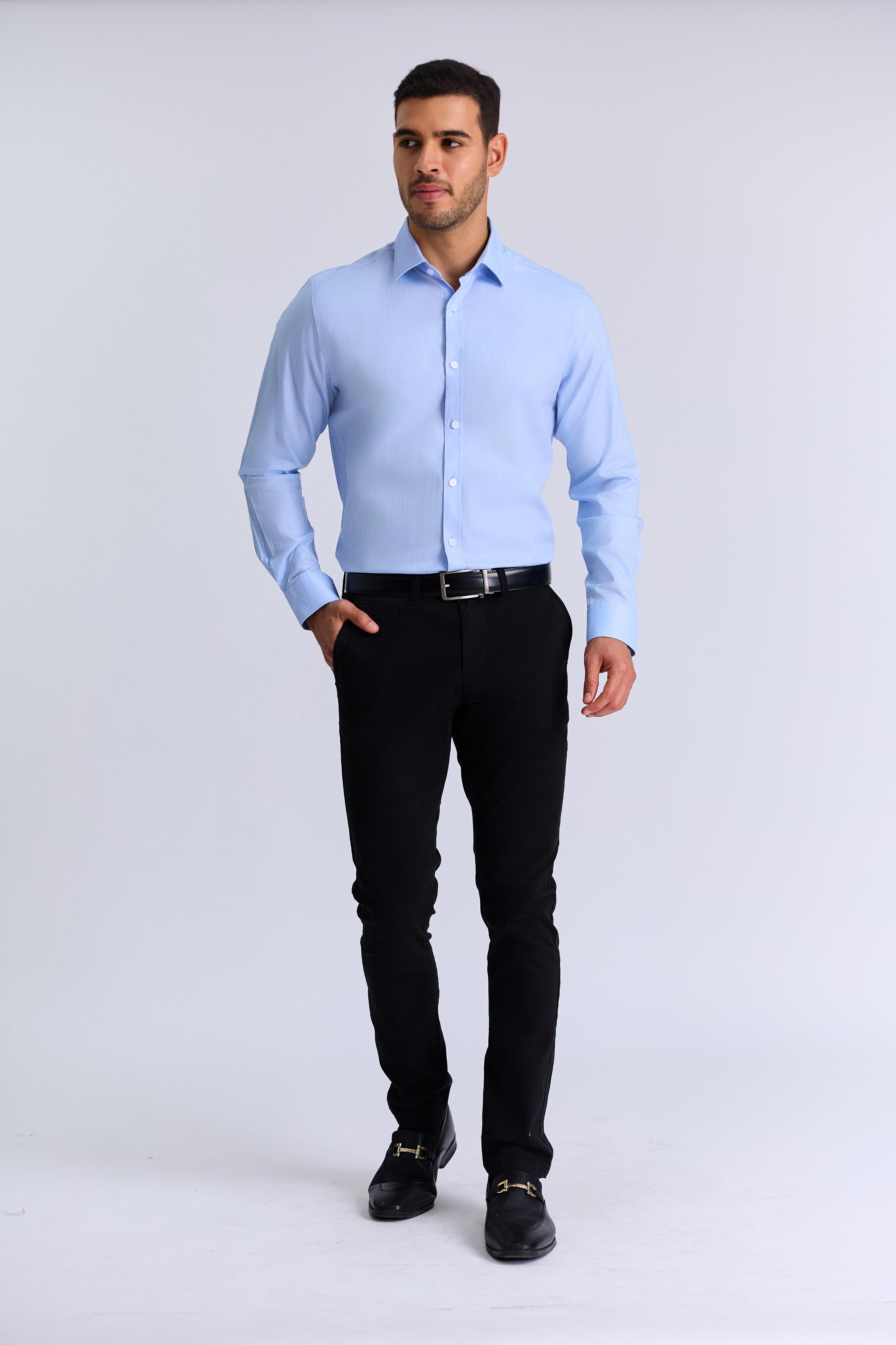 This formal slim-fit shirt delivers a refined balance of sophistication and everyday versatility. Tailored from a lightweight woven fabric with a smooth, breathable texture, it offers a polished appearance that transitions seamlessly from office meetings to evening occasions. The shirt features a structured collar, and clean cuffs that enhance its crisp silhouette. Designed for a modern fit that contours naturally to the body, it ensures all-day comfort and effortless elegance when paired with formal trousers or chinos.