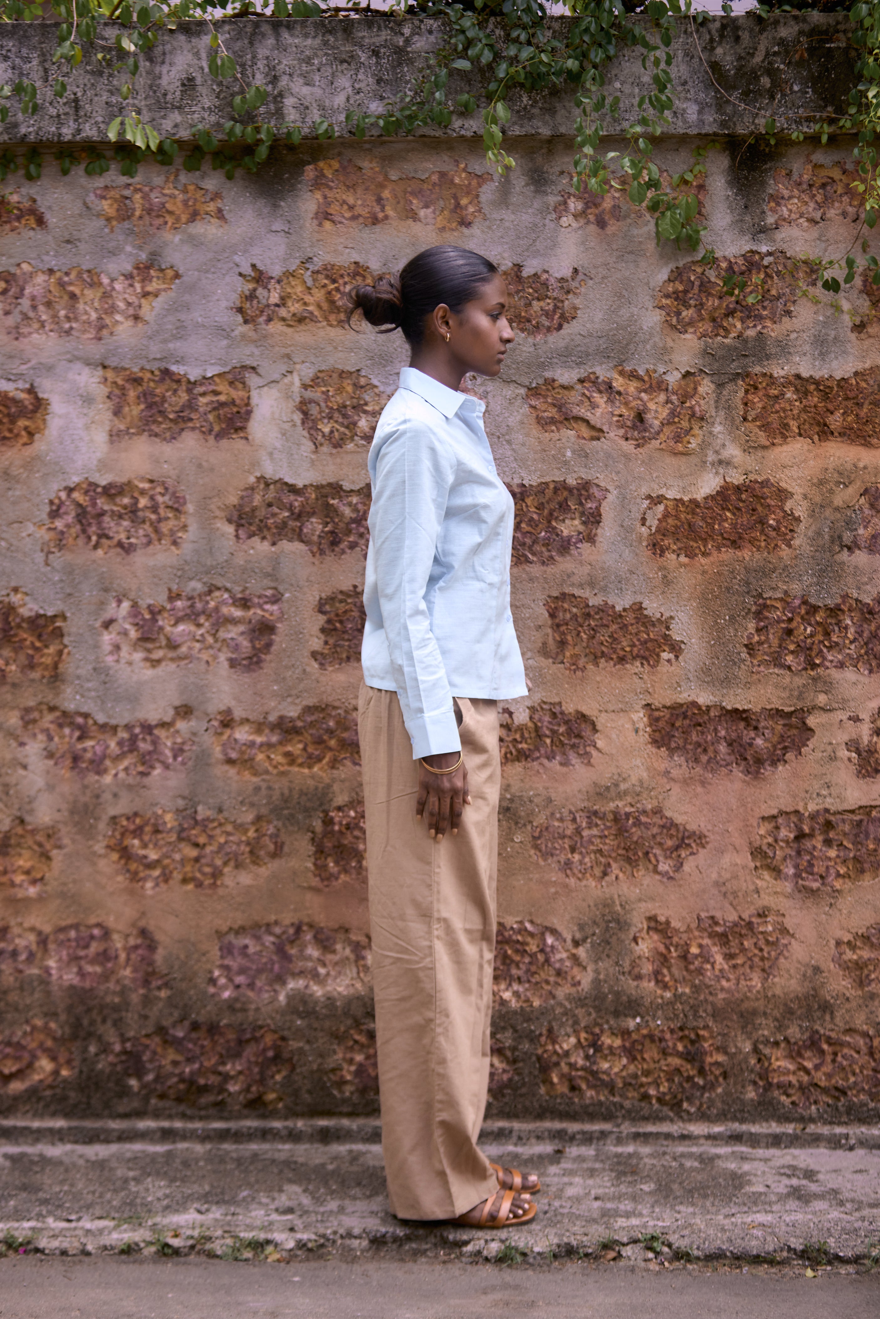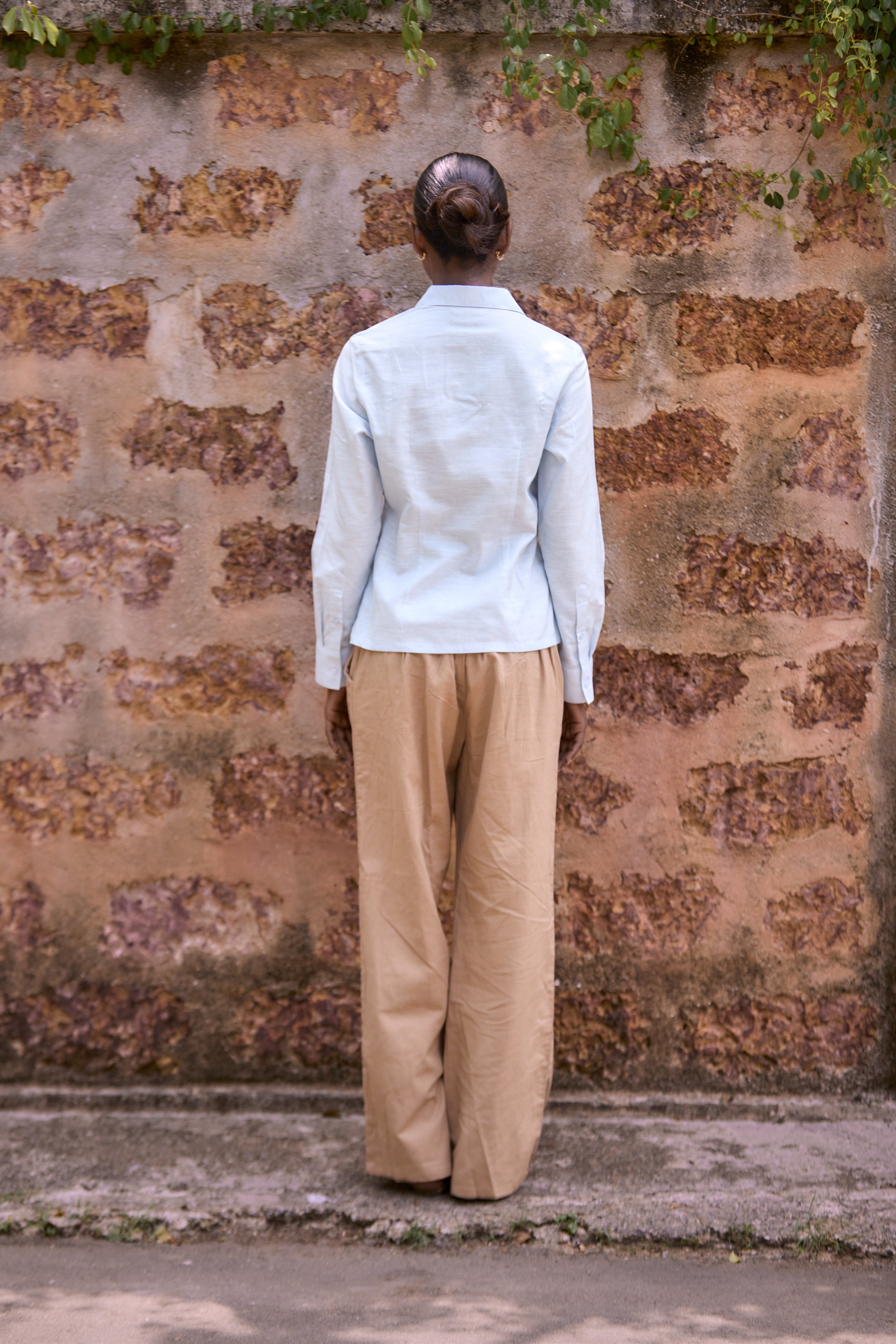This solid long-sleeve shirt is crafted from breathable linen-cotton fabric, offering all-day comfort and a lightweight feel. Designed in a relaxed, loose-fitted silhouette, it provides effortless movement and a clean, minimal look. Versatile and easy to style, it pairs seamlessly with pants, skirts, or shorts. Perfect for everyday wear, this shirt combines natural comfort with timeless simplicity for a refined yet laid-back wardrobe essential.