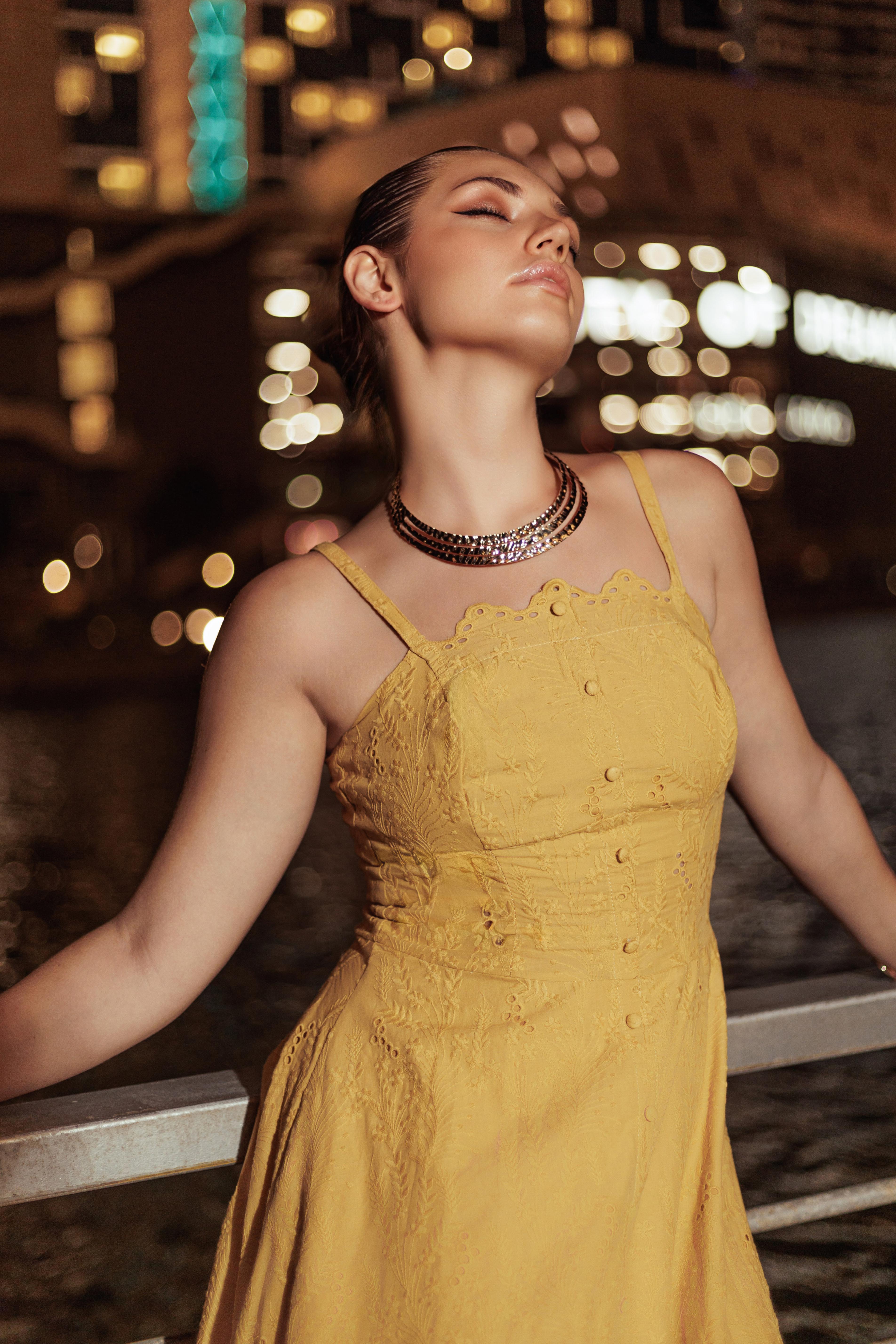 Embrace effortless evening charm with the Straight Serenade button-front Midi Dress, a delightful piece that combines sweet detailing with a sophisticated silhouette, available in classic black, crisp white, and vibrant mustard yellow. This captivating midi dress features delicate spaghetti straps,unique scalloped neckline, and embroidered texture adds depth and a touch of romance. The fitted bodice flows into a gently flared skirt with a button-front detail and a subtle side slit, making it a perfect choice for a variety of evening events. Ideal for a summer cocktail party, an upscale dinner on the terrace, or a chic holiday getaway, this dress can be styled elegantly with the addition of metallic heels, a contrasting clutch and layered necklaces or simple hoop earrings to complete a polished and stylish look that shines under the evening lights.