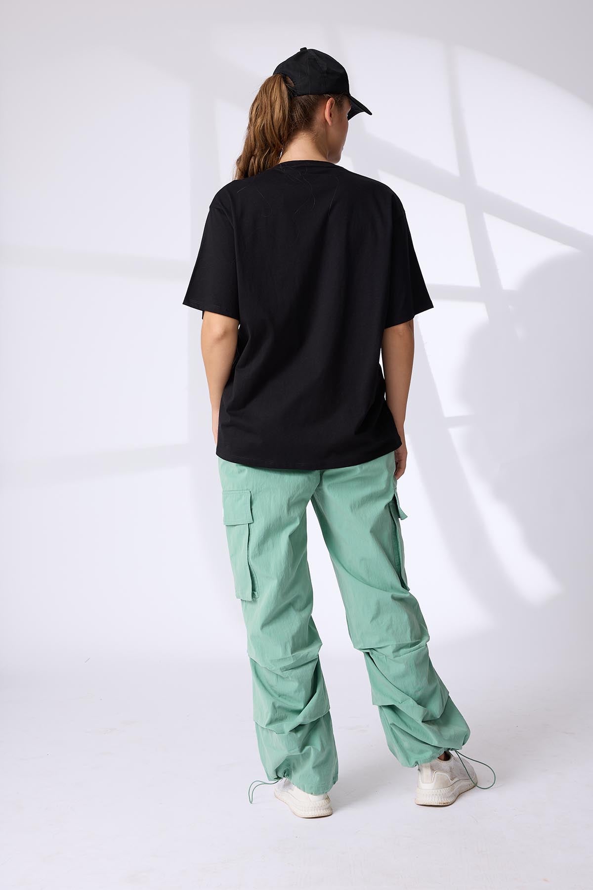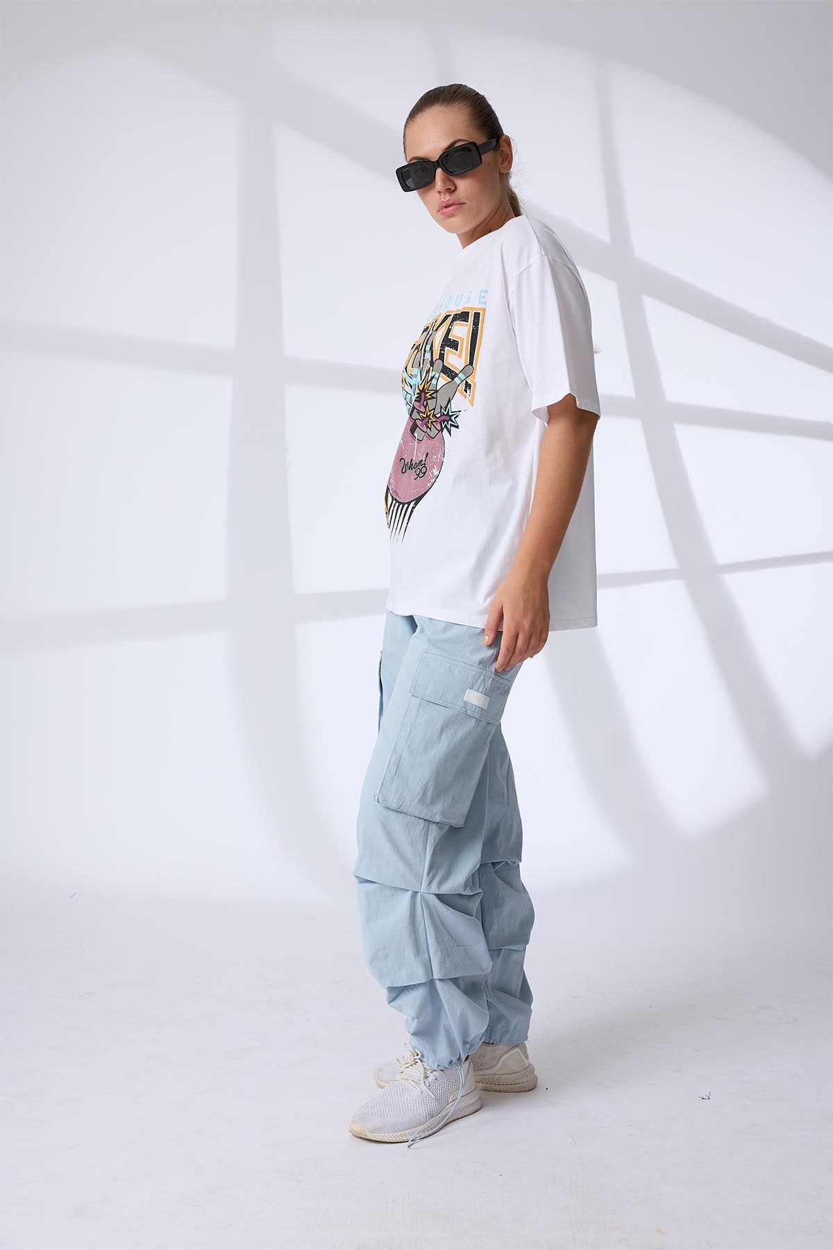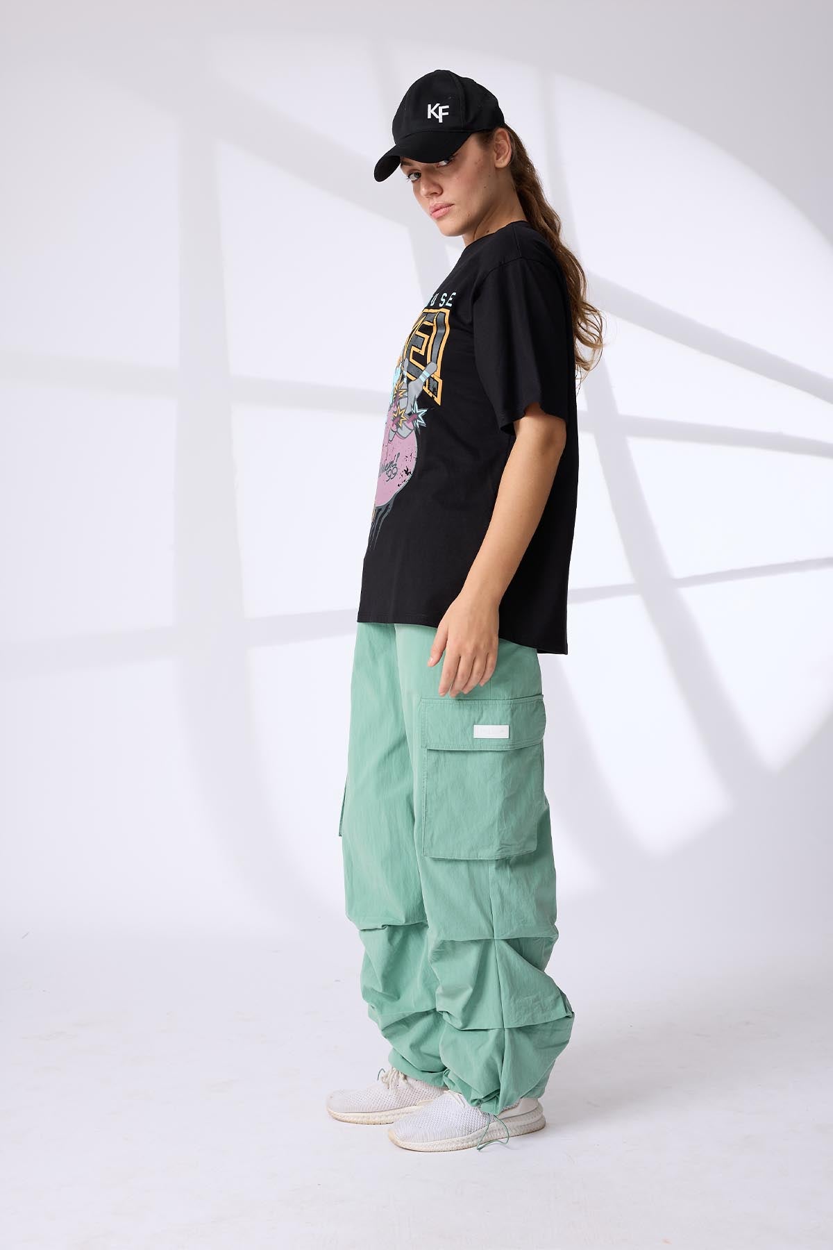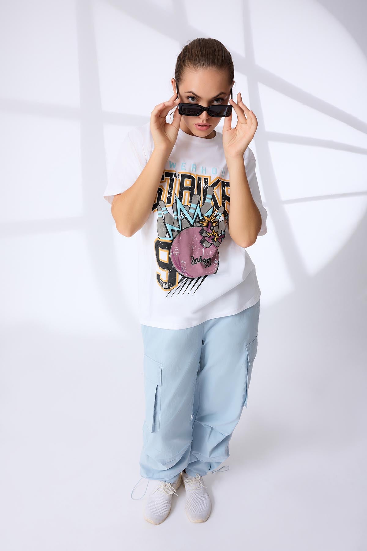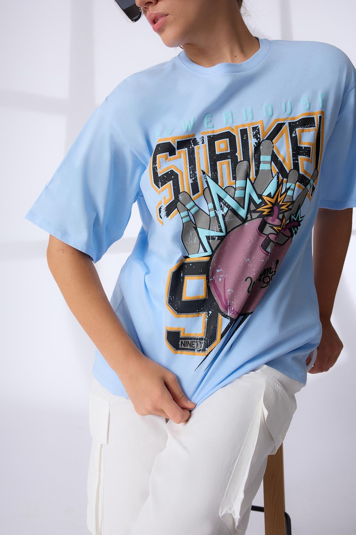 This oversized T-shirt makes a bold statement with its large front graphic, turning a casual staple into a standout piece. Cut in a loose, relaxed silhouette, it offers all-day comfort with effortless streetwear appeal. The clean hemline enhances the laid-back vibe, making it perfect for pairing with everything from jeans to layered looks.