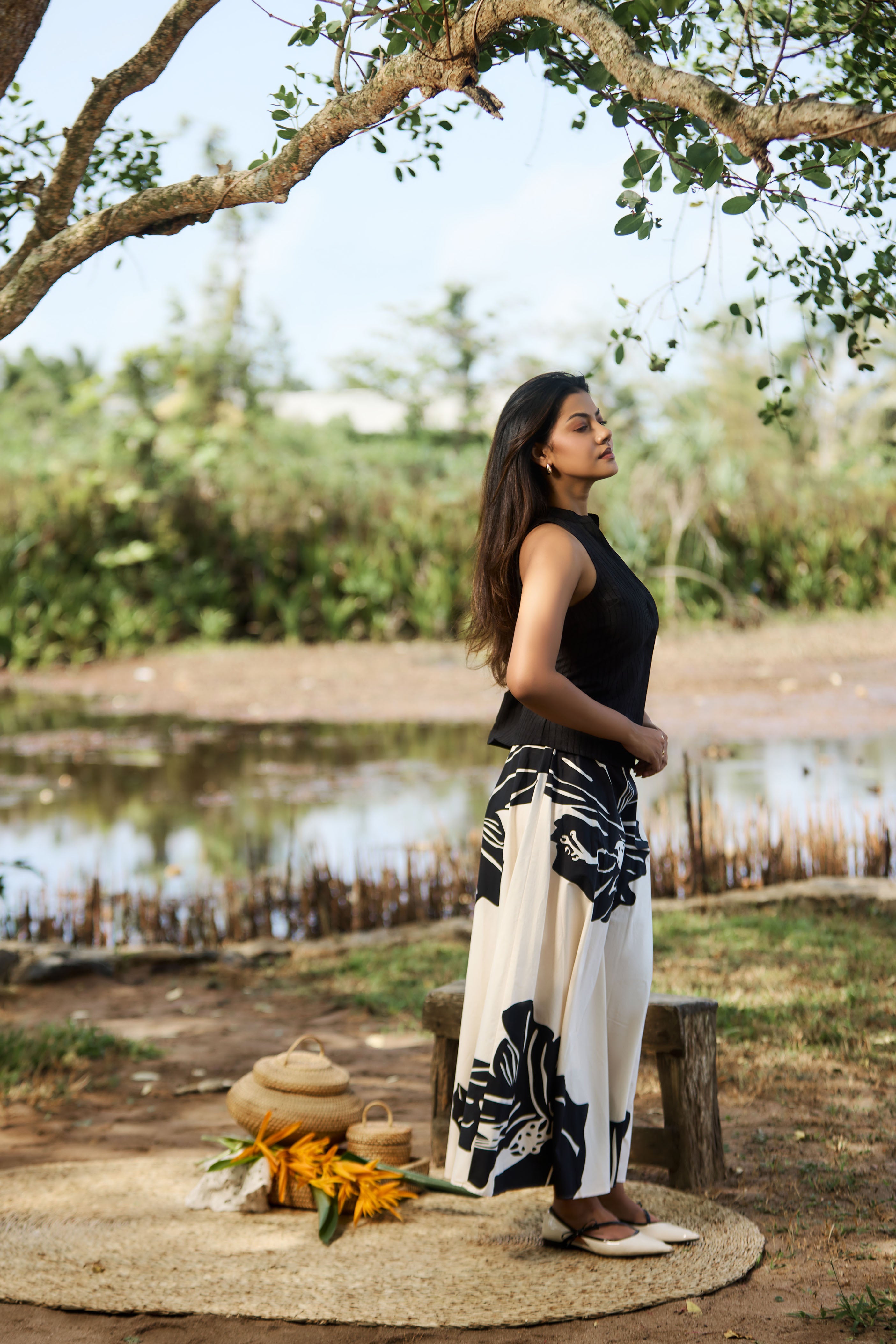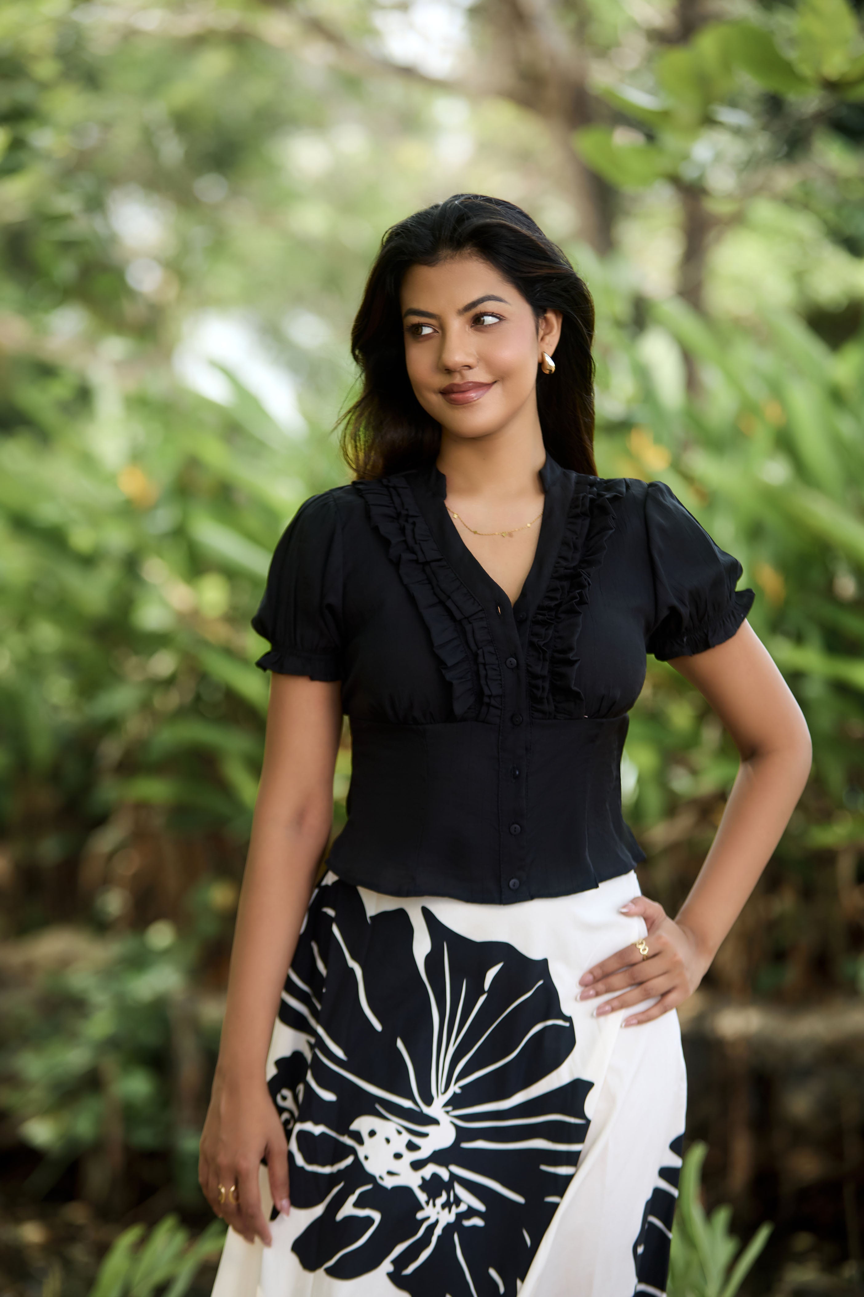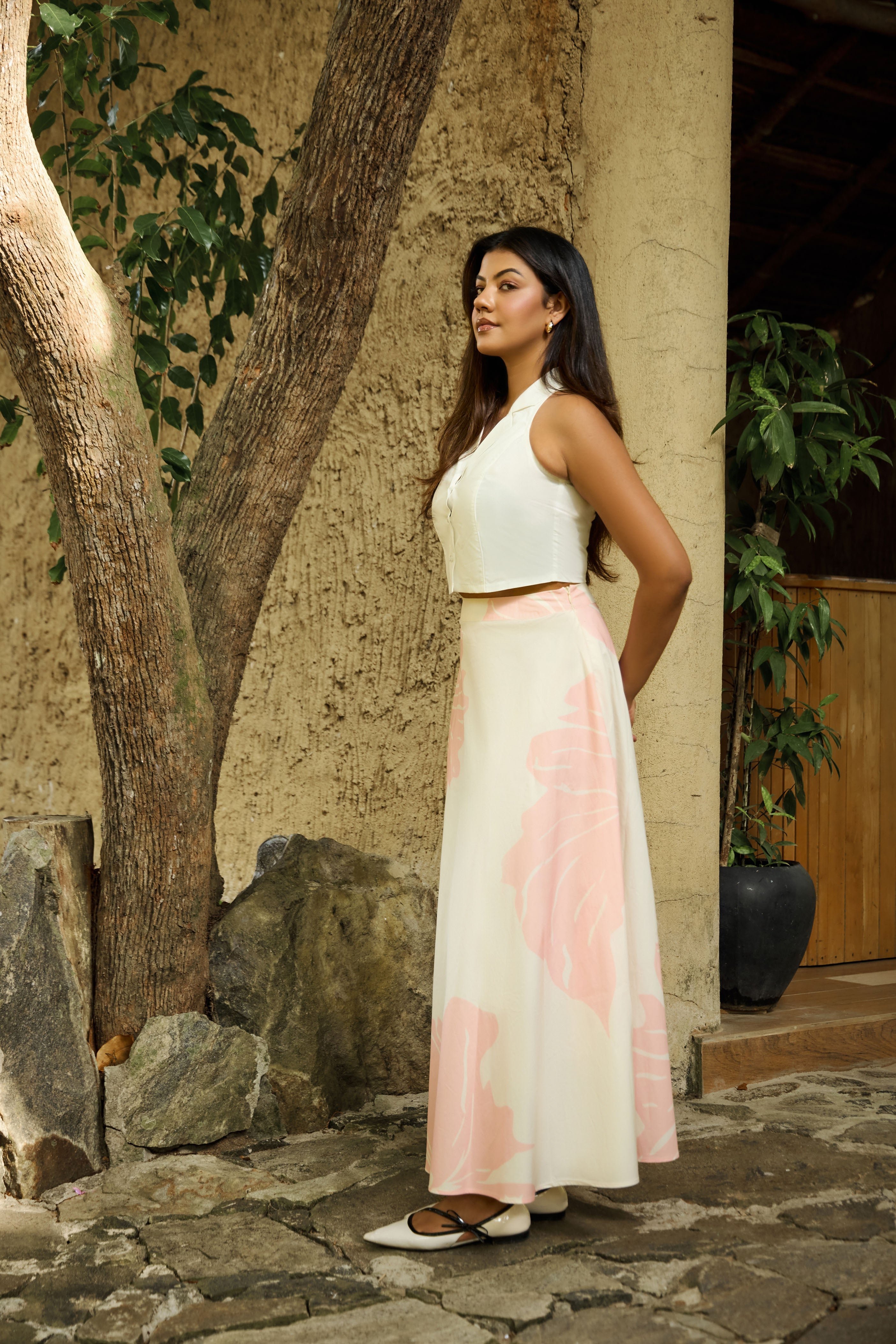 movement and charm, while the breathable fabric ensures allday comfort. Style it with a fitted top or crop top for a chic,
