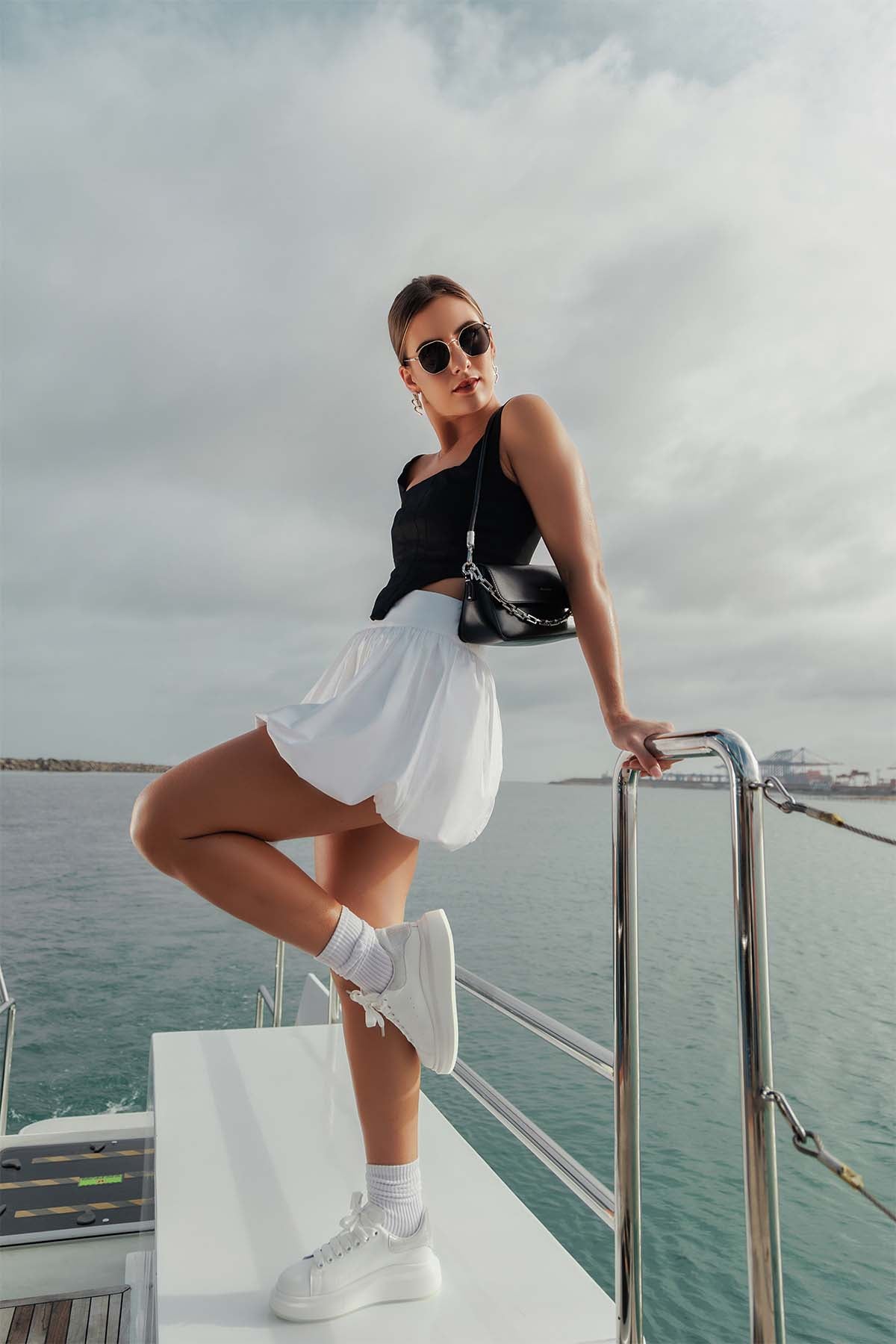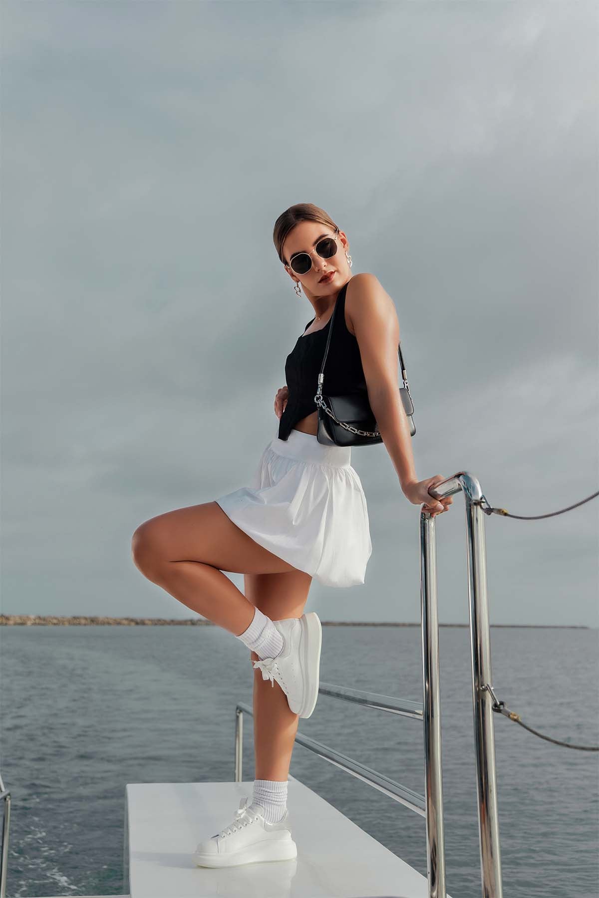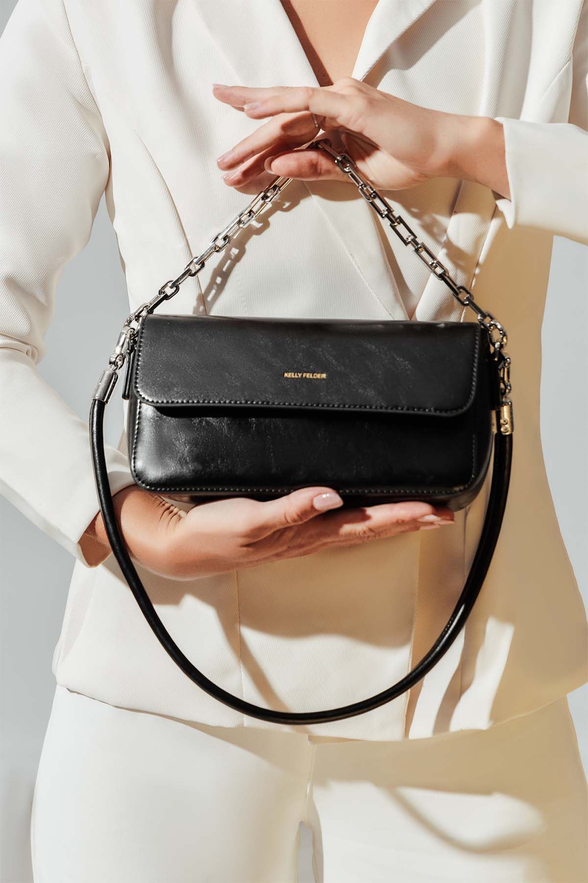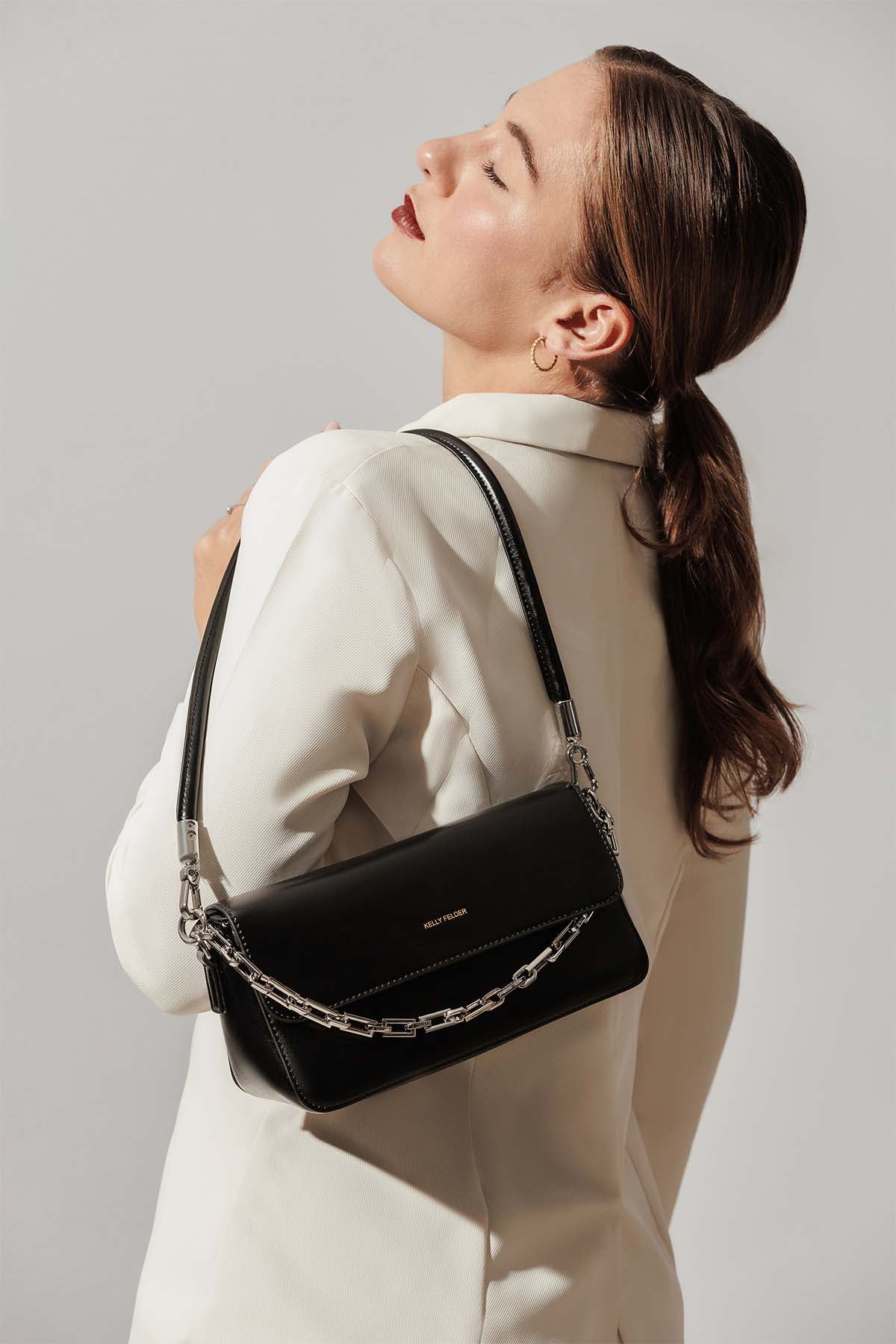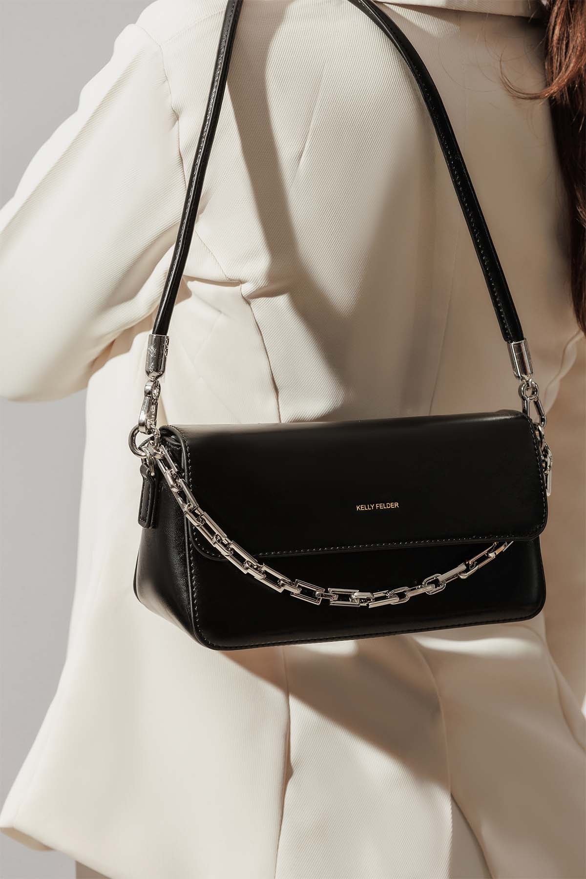 A sleek companion for days at sea and nights in the city. Crafted from supple cowhide, The Pier Sling features two interchangeable straps — a refined leather strap for classic wear and a gleaming chain strap for an elevated twist. Available in timeless black or crisp white, it’s the statement sling for every course you set.